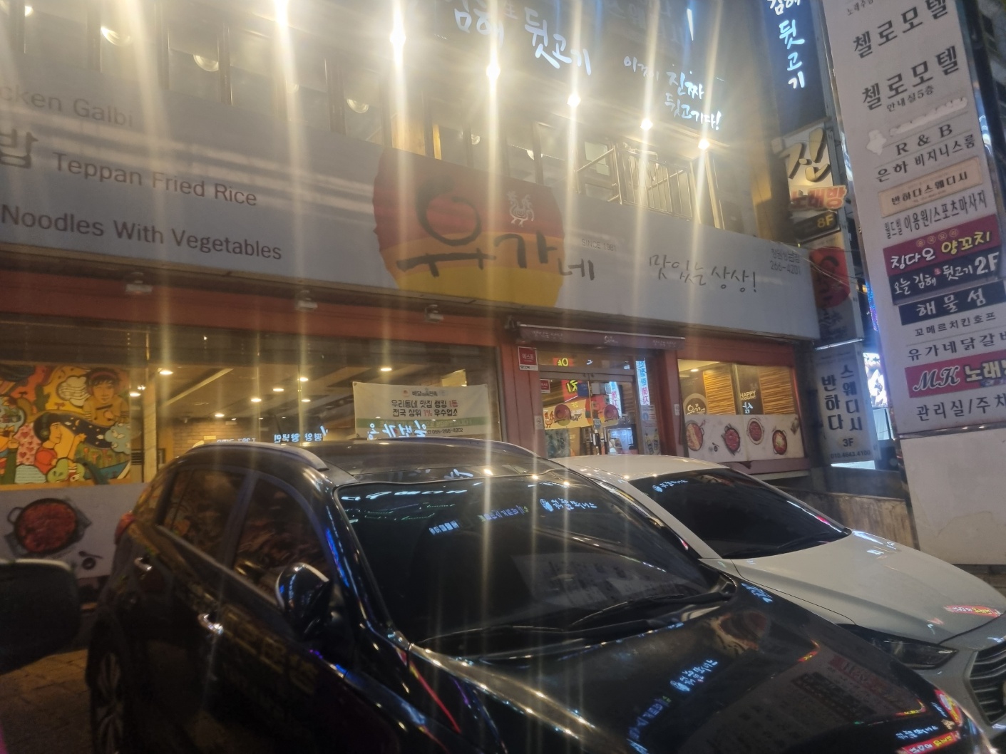 연주회 끝나고 상남동 근처에서 밥을 먹기위해 거리가 있는 주택가에 주차를 하고 유가네에 도착을 했다.