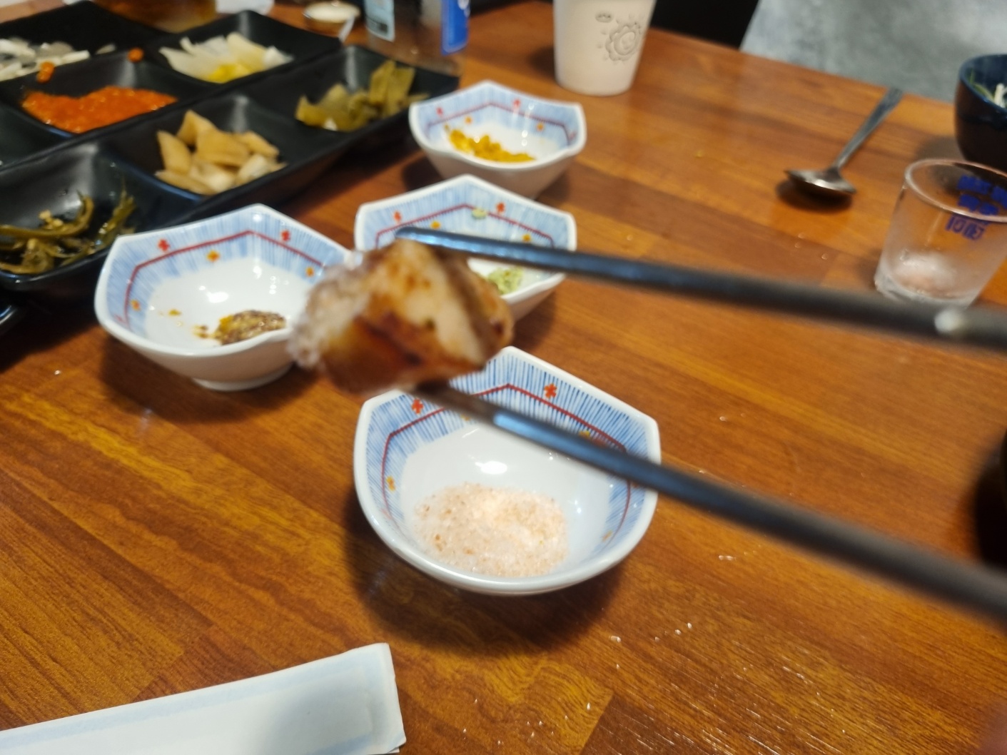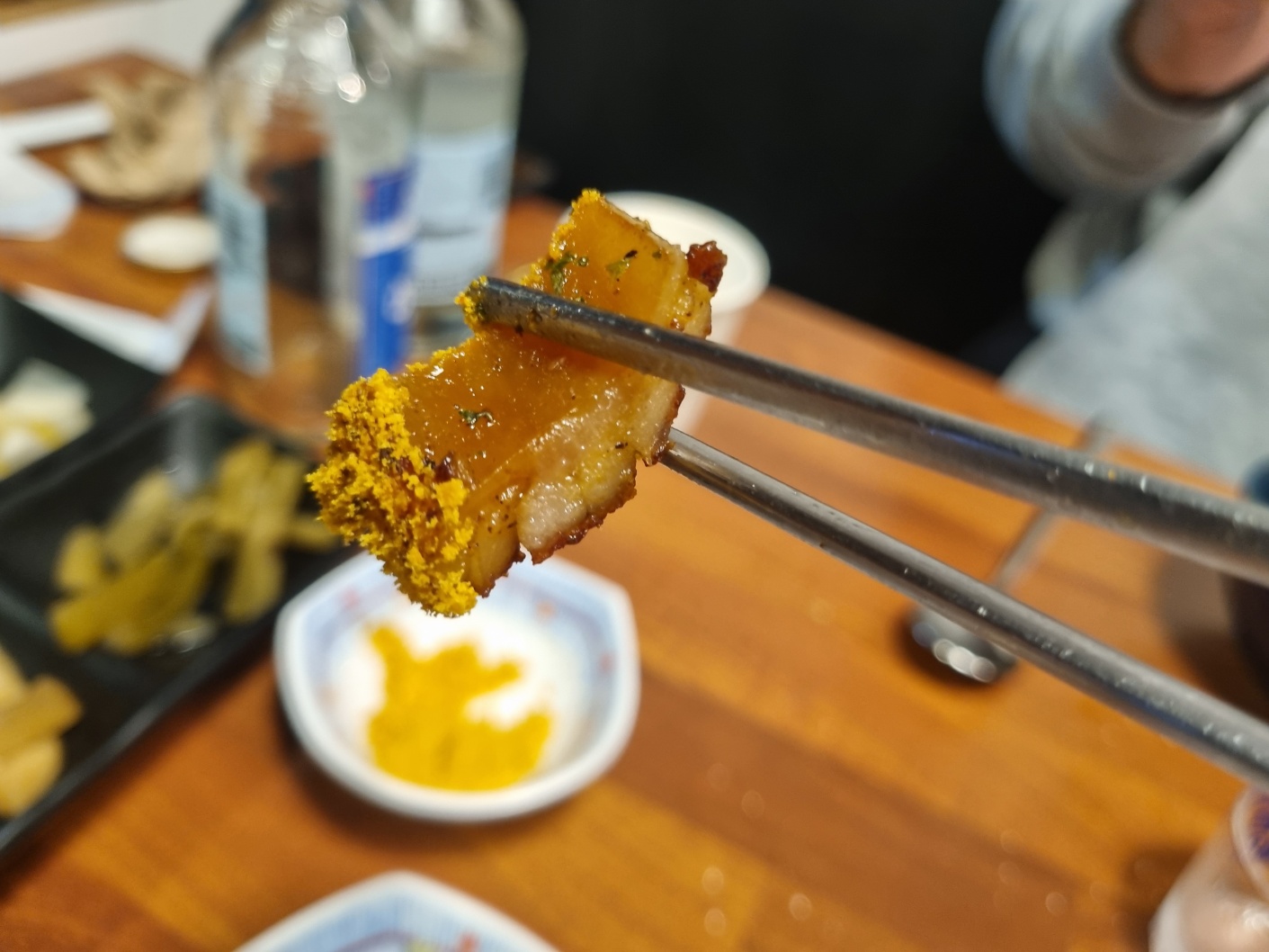 숙성돼지에는 이베리코 특수부위, 삼겹살, 껍데기, 목살이 나왓다. 와사비 소스에 곁들어 먹는것을 추천한다 !!!