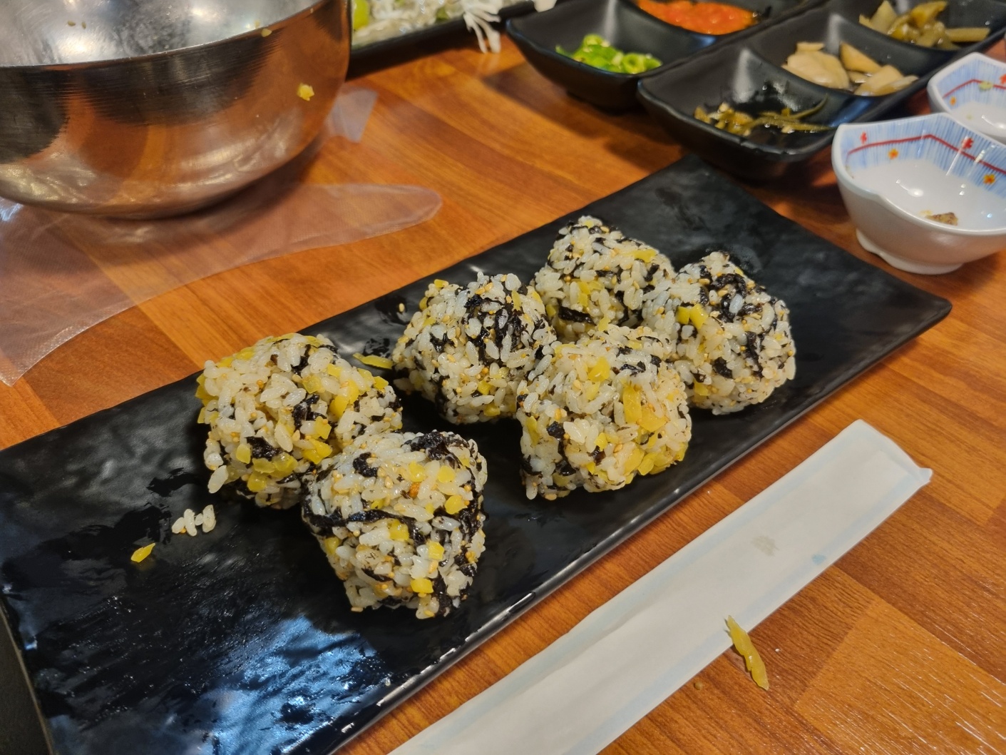 주먹밥은 간장맛이 있어 좋았고 큼직하게 만드니 7개 정도가 나왔다.
