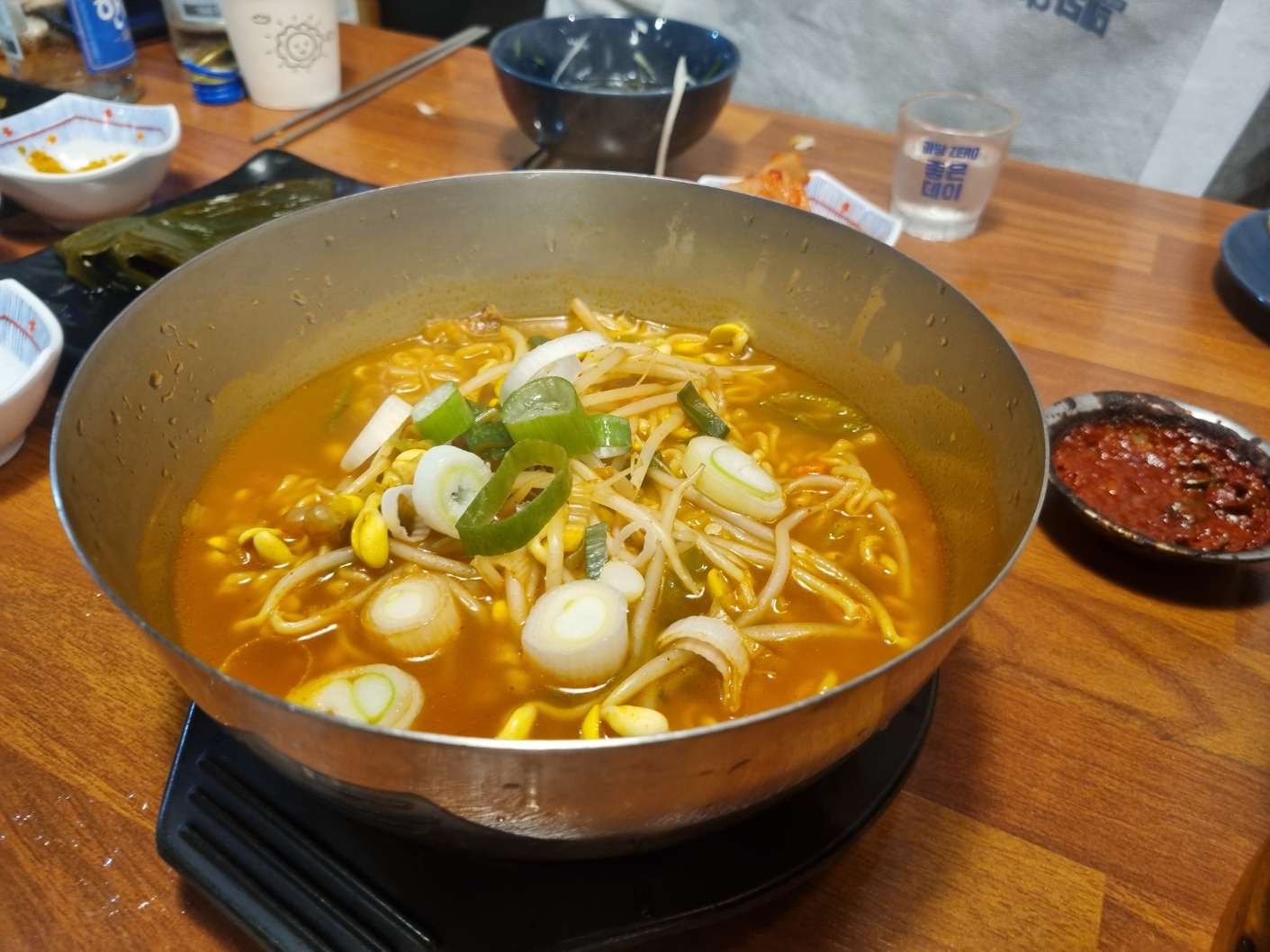 드디어 나온 해장라면 !!! 칼칼하고 해장하기 딱 좋은 맛이였다.