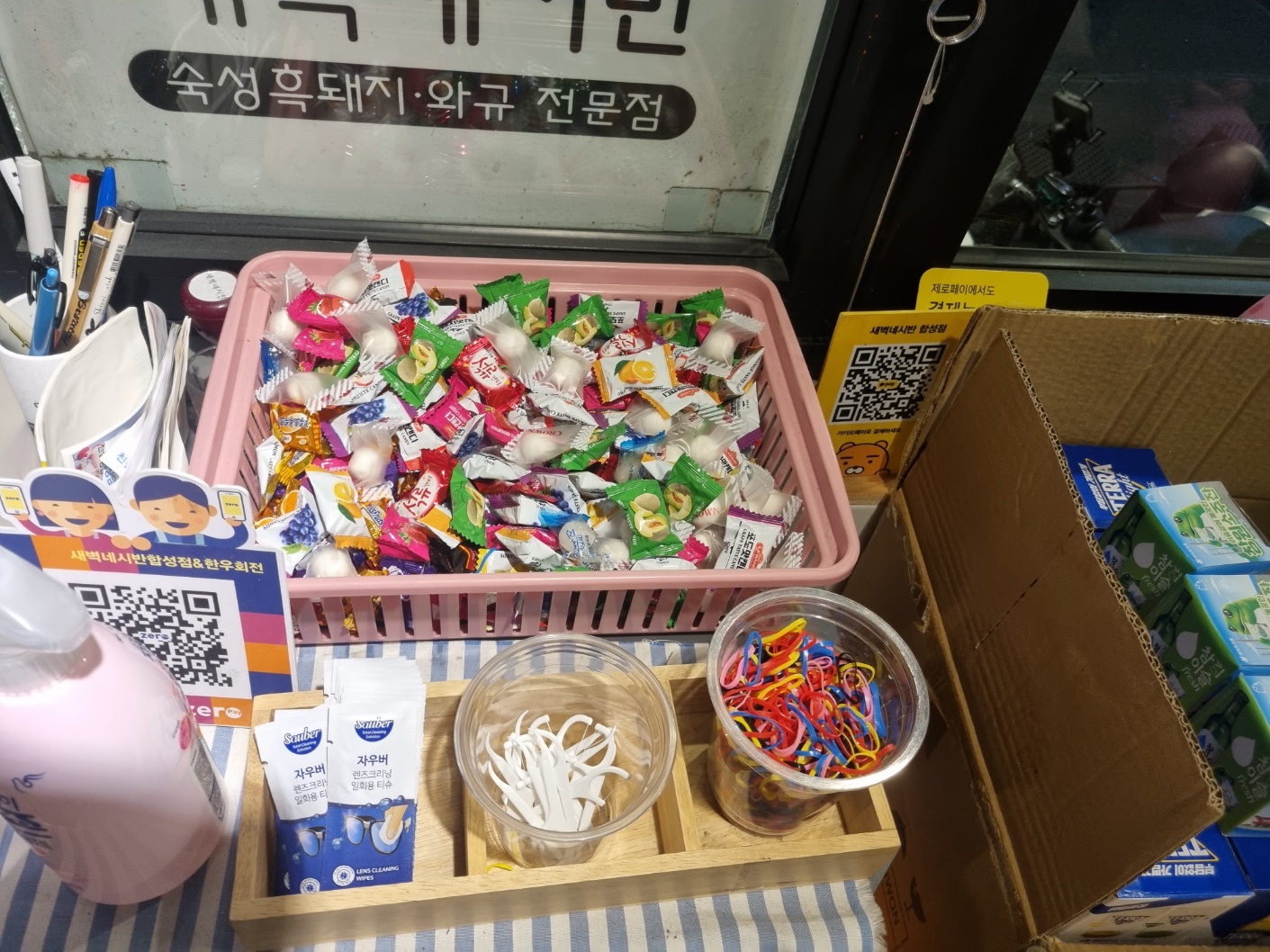 계산후에 옆에 사탕과 치실이 옆에 구비되어 있습니다.\