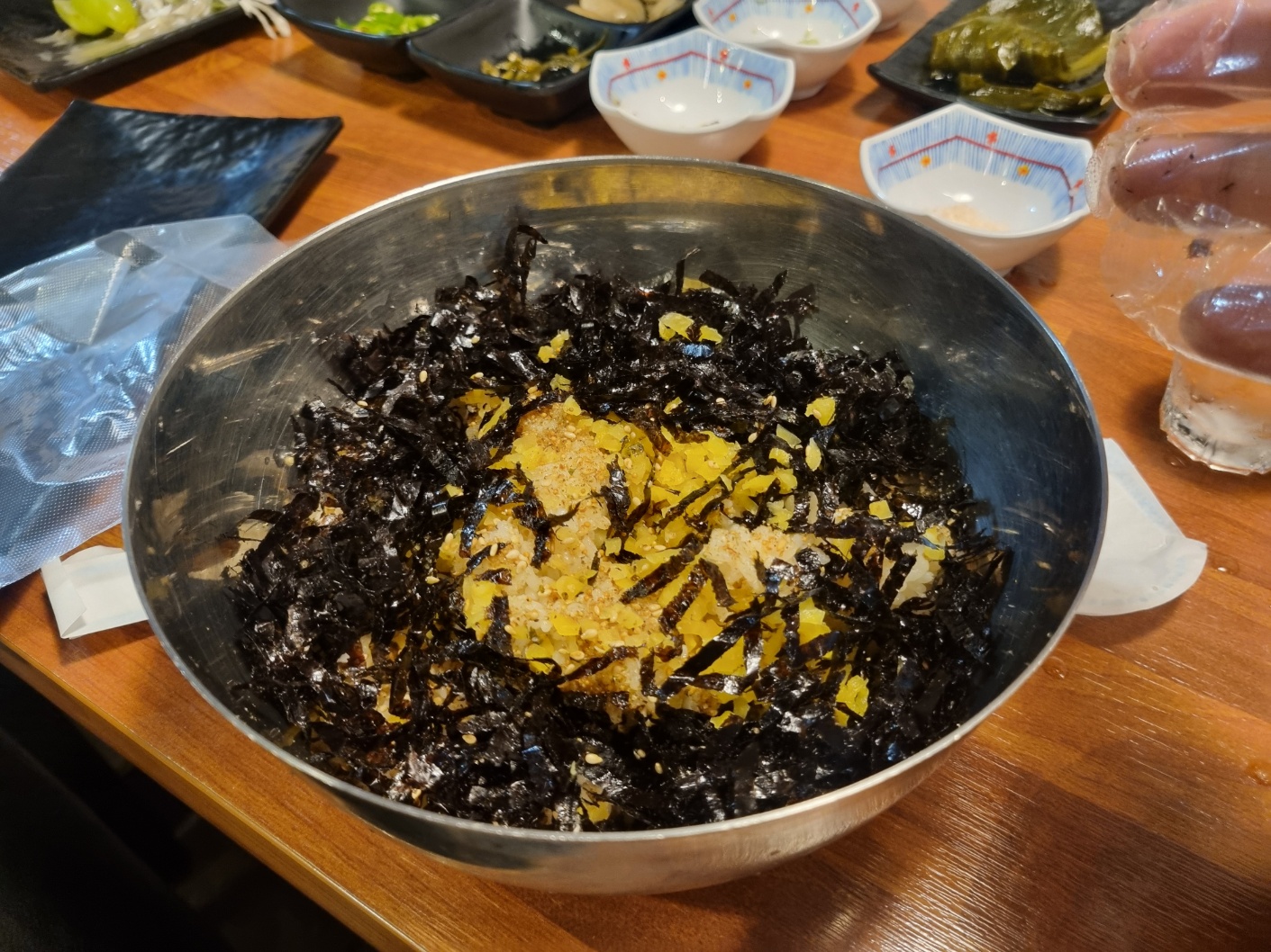 2명에서 4인분을 먹고나서 해장라면과 후리카게 주먹밥을 주문했다.