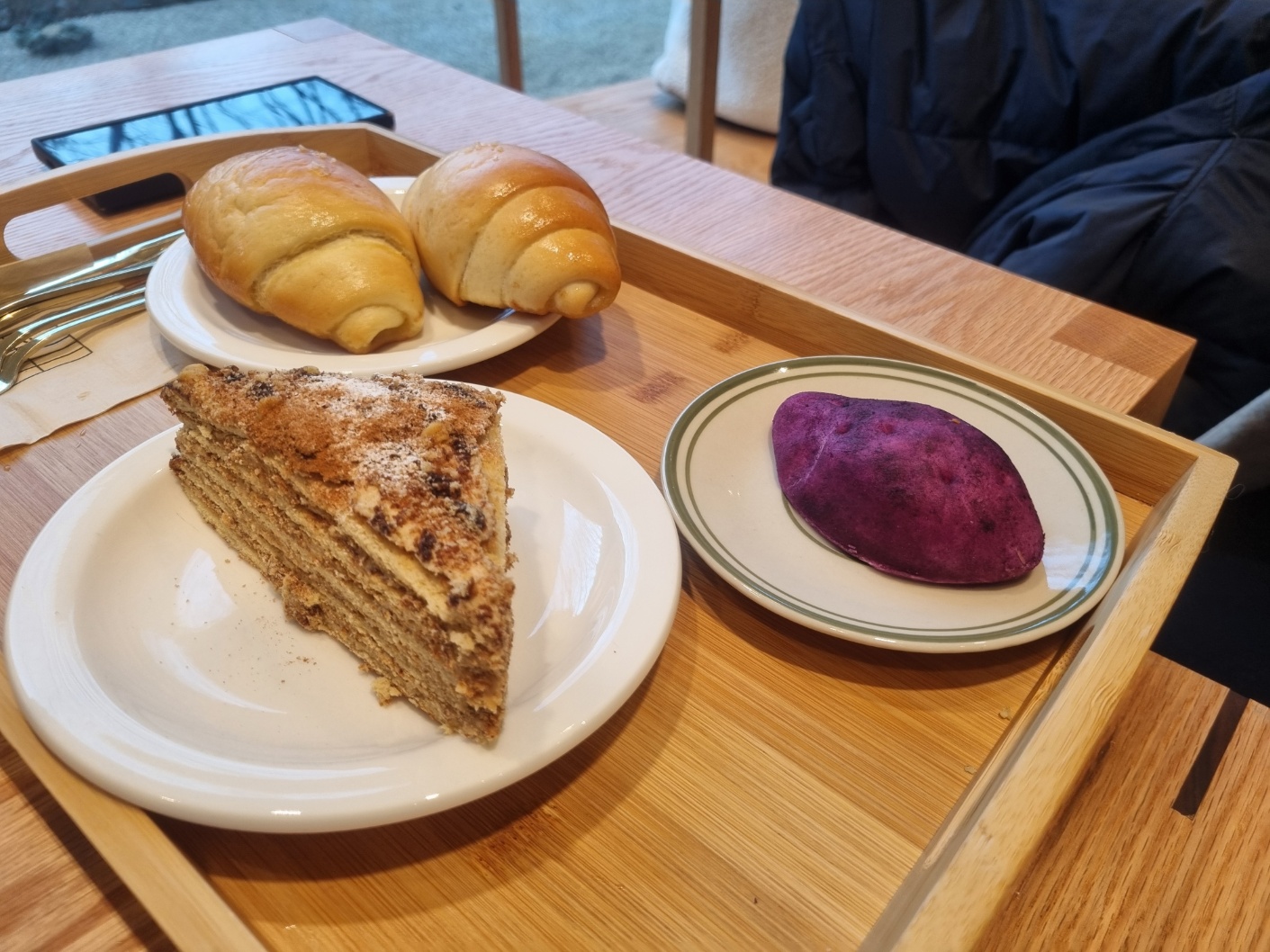 바닐라빈라떼와 말차라떼 소금빵을 먹으며,,,