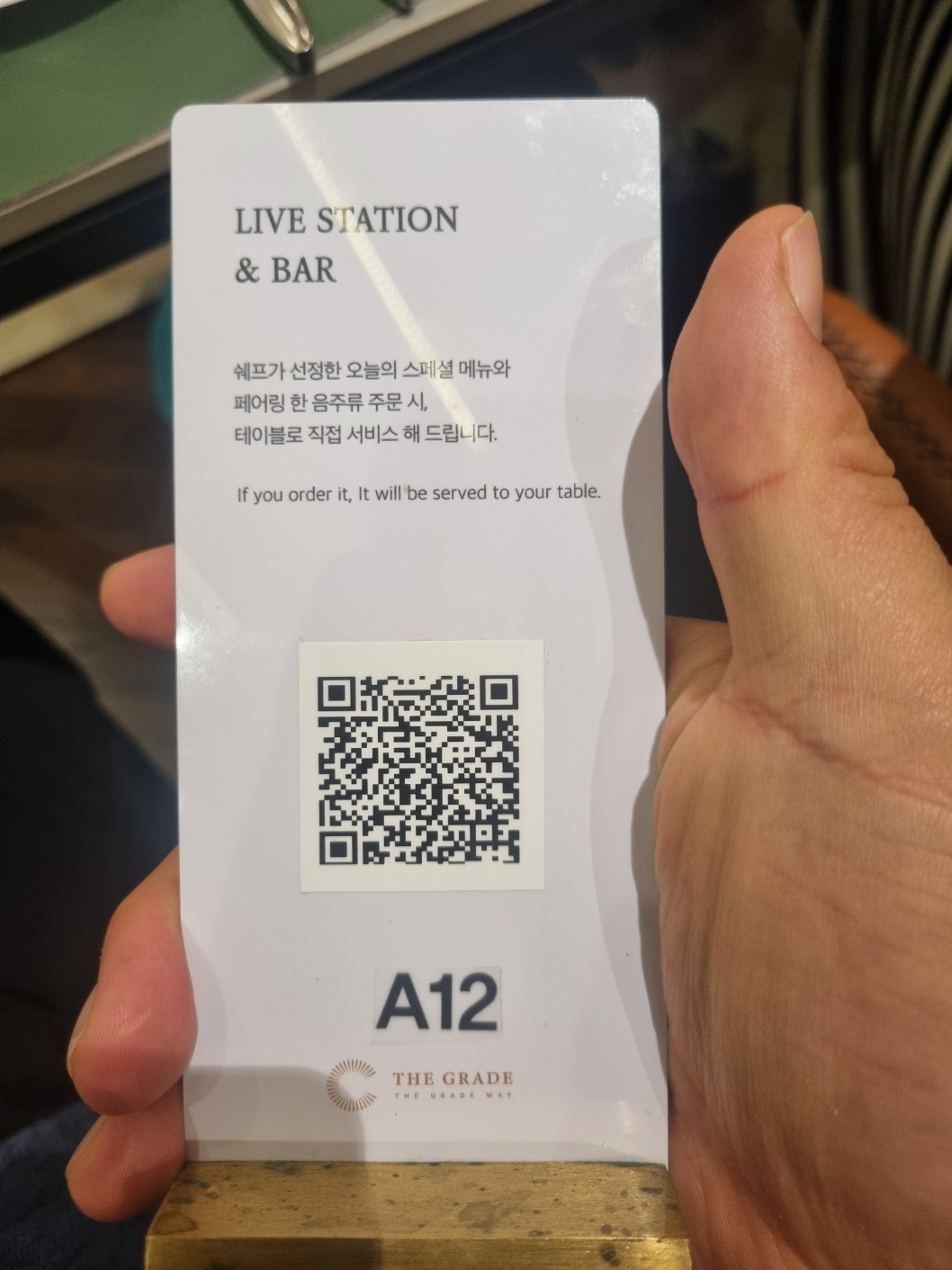 각자리에 배치되어 있는 큐알코드 네이버에 들어가서 렌즈 켜보면 커피랑 차 음료를 주문할 수 있는데