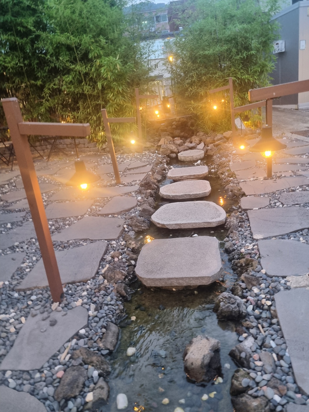 여기는 입구에 오자마자 작은 천, 개울가를 만들어 멋을 표현하고 있다.