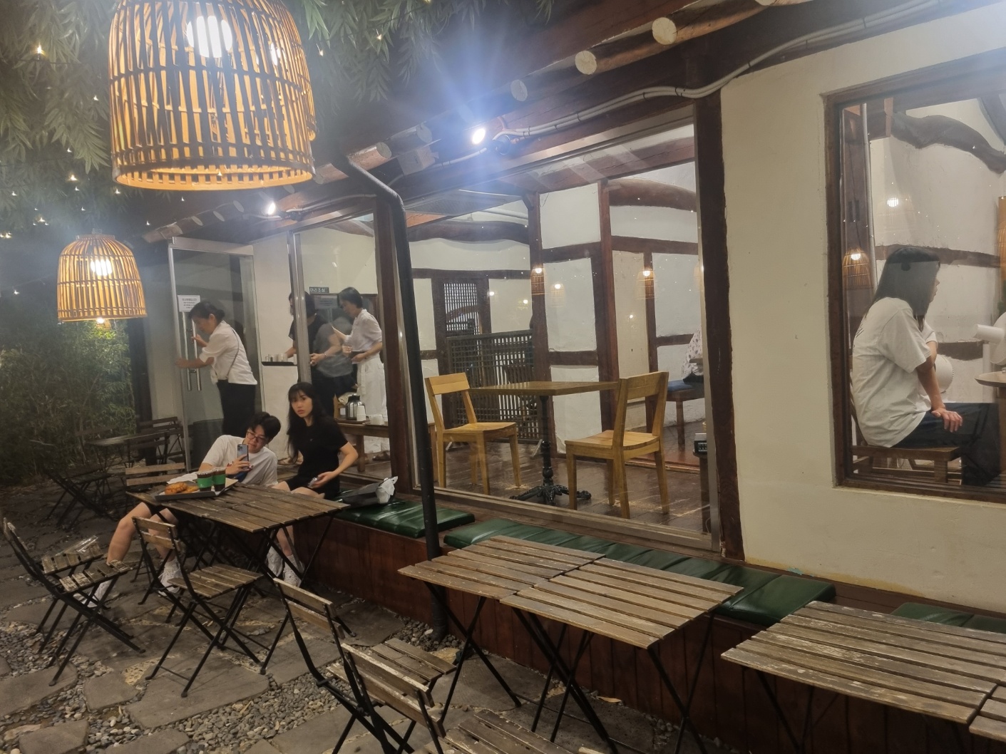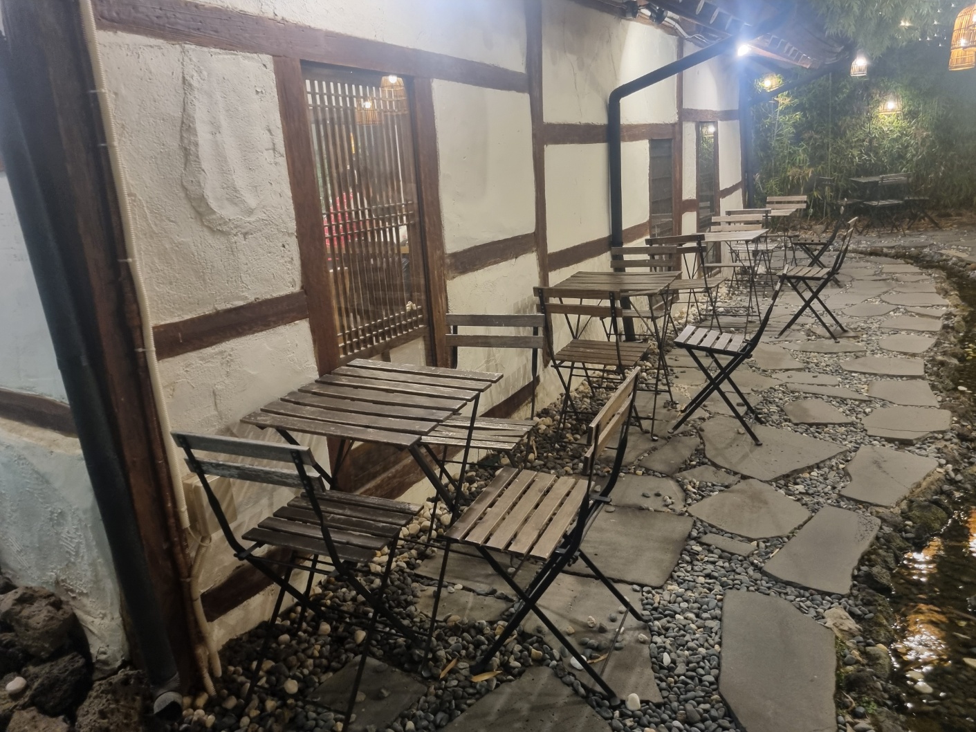 오우가카페에서 들어와보니 한가운데 한옥집 내부에 자리도 많고, 바깥에도 차를 한잔 마시며 힐링할수 있는 공간이긴하다.