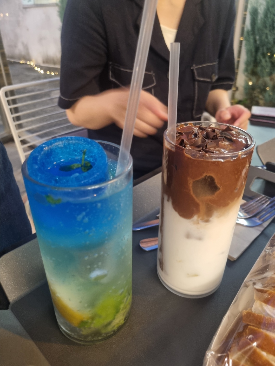 우리는 수에이드와 다크초코라떼를 시켰다.