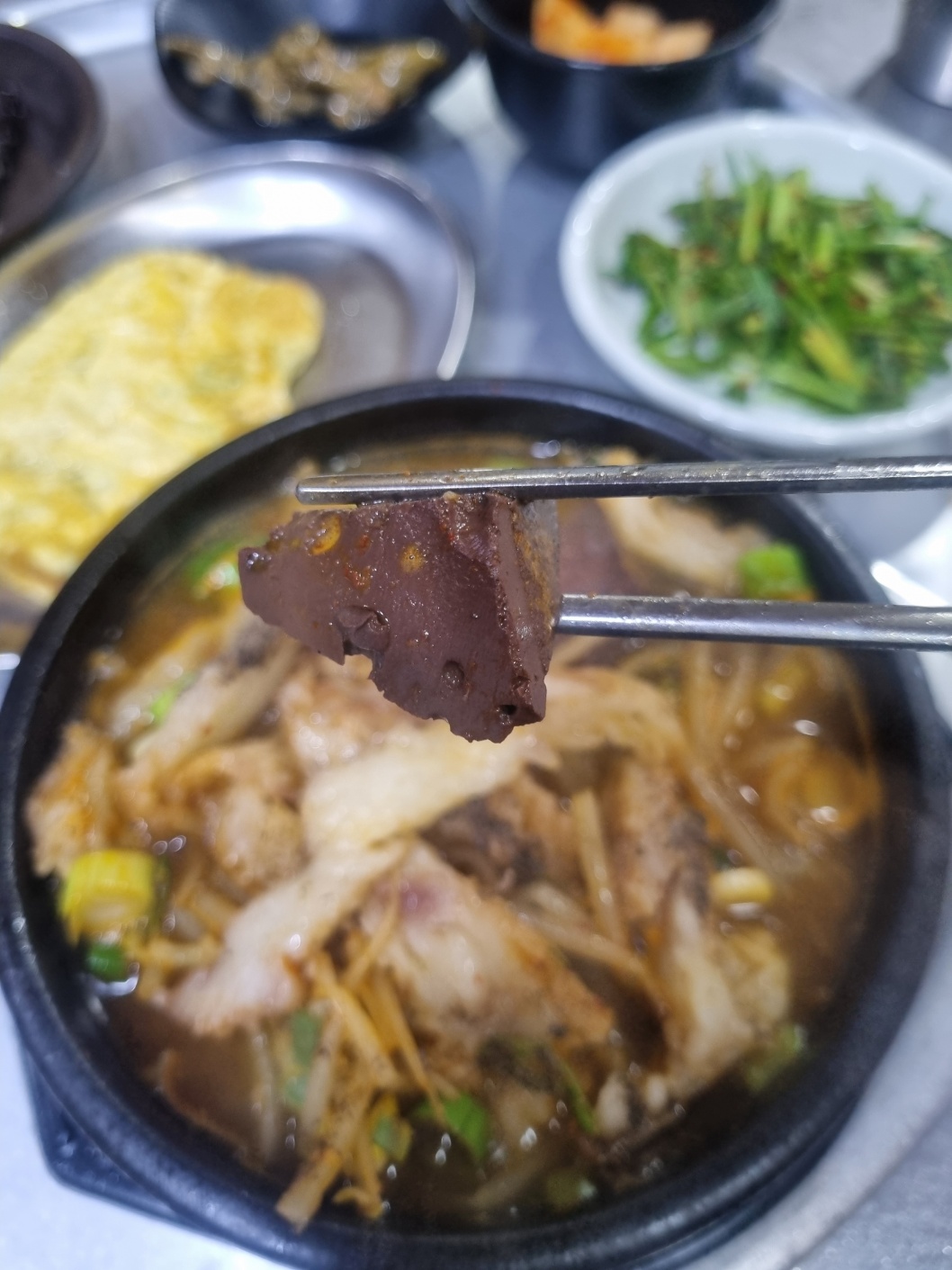 수구레 국밥안에 수구레와 선지가 많이 들어있다.