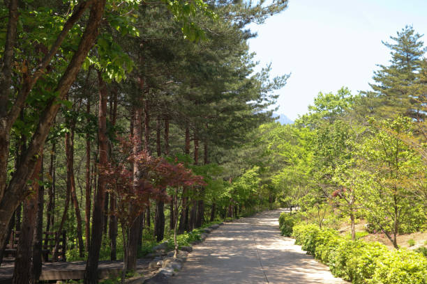 산책로: 수국 사이로 조성된 산책로를 따라 여유로운 산책을 즐길 수 있습니다.