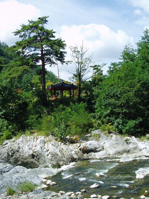 사진 촬영 명소: 폭포, 바위, 계곡과 숲이 만드는 조화로운 풍경.