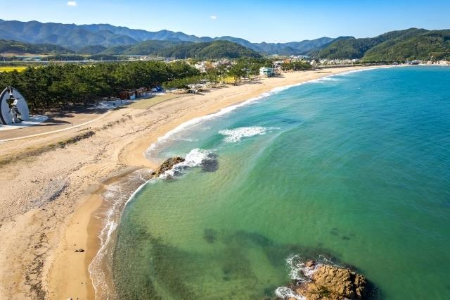 약 8km에 달하는 백사장, 소나무 숲 배경, 얕고 맑은 바다 덕분에 가족·커플·감성 여행객 모두에게 사랑받고 있으며, 동해안을 따라 완성되는 블루로드 트레킹의 북단이기도 합니다