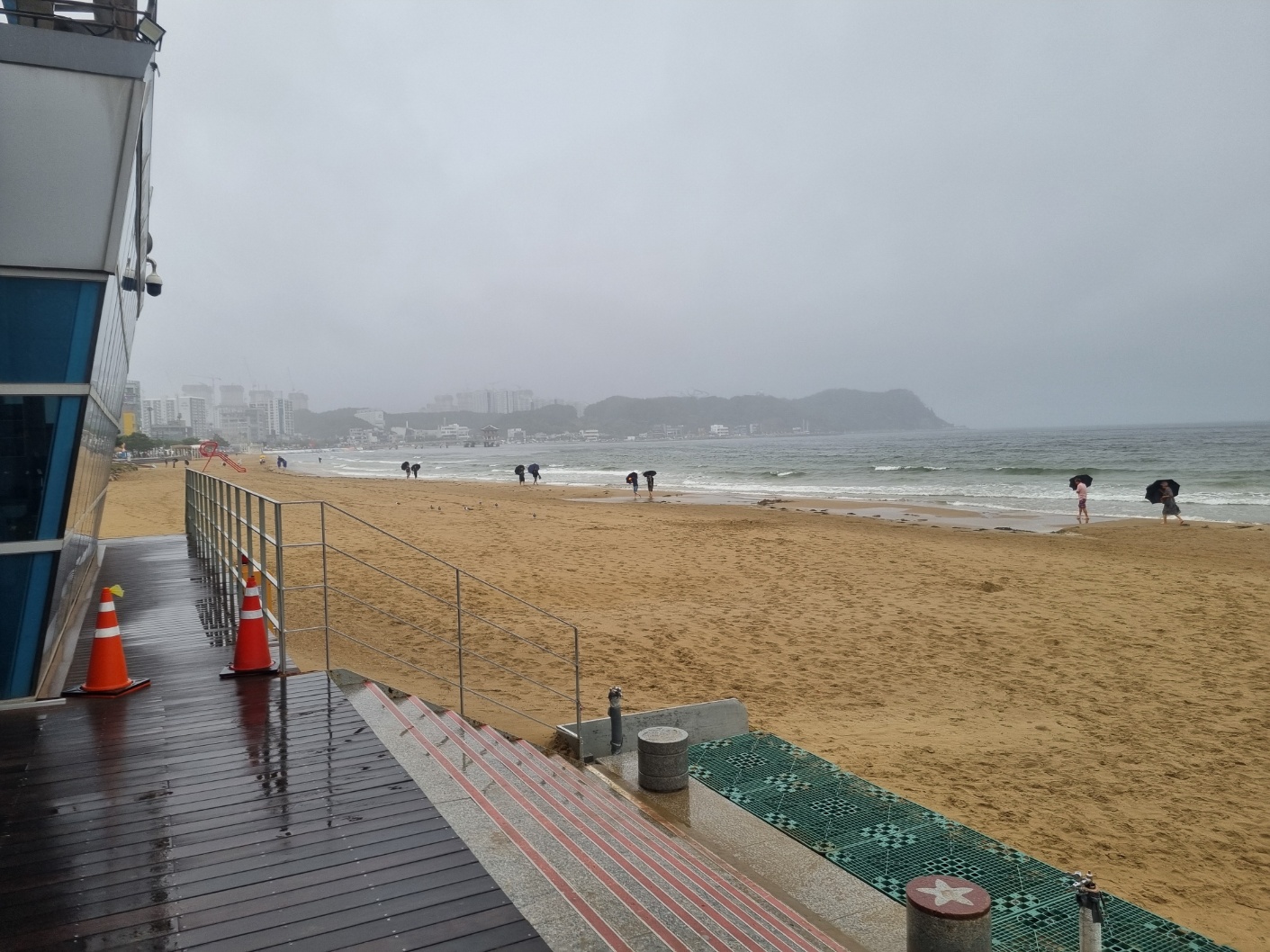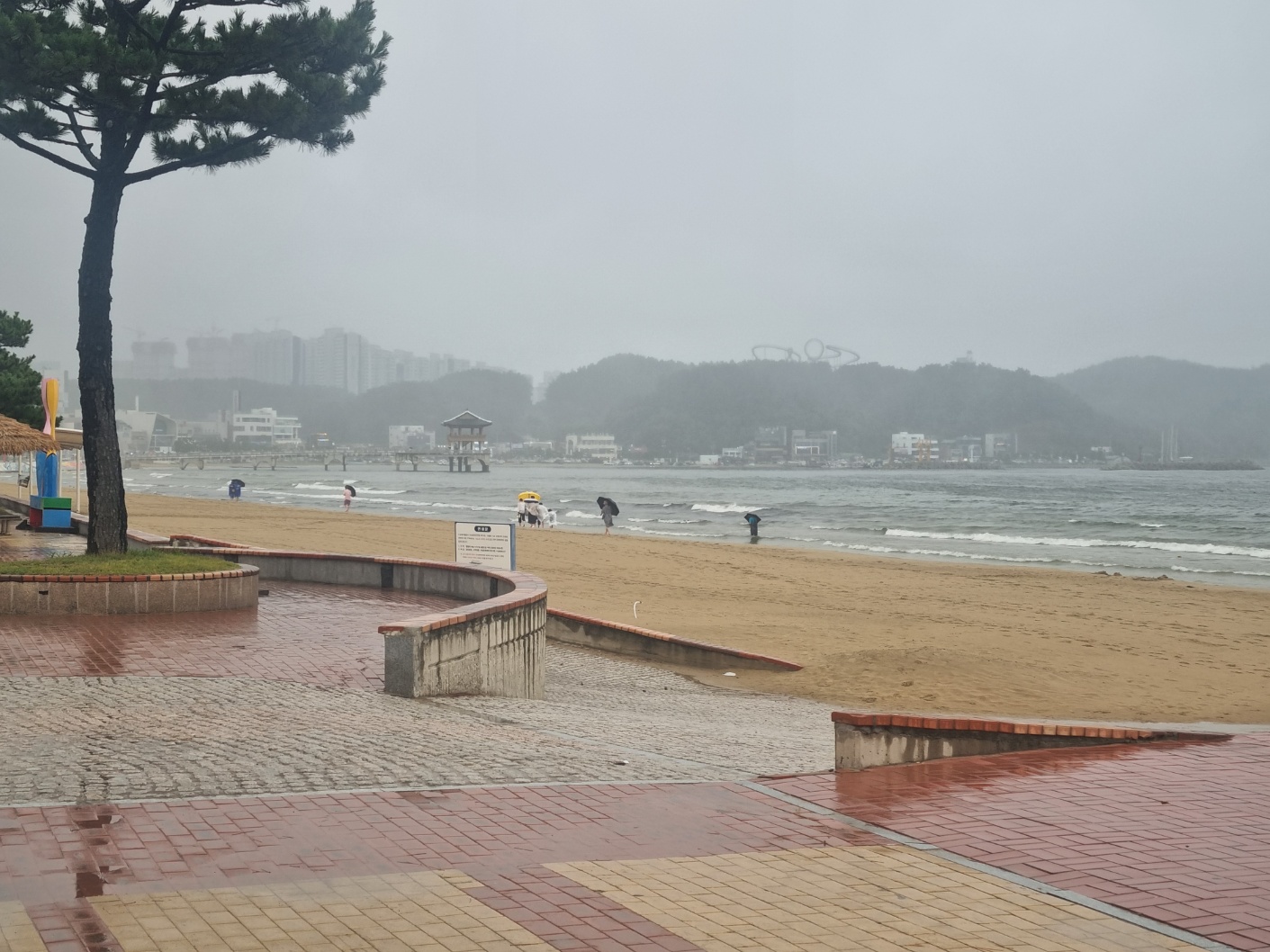 비오는 영일대 해수욕장 해안길 거리,,,,