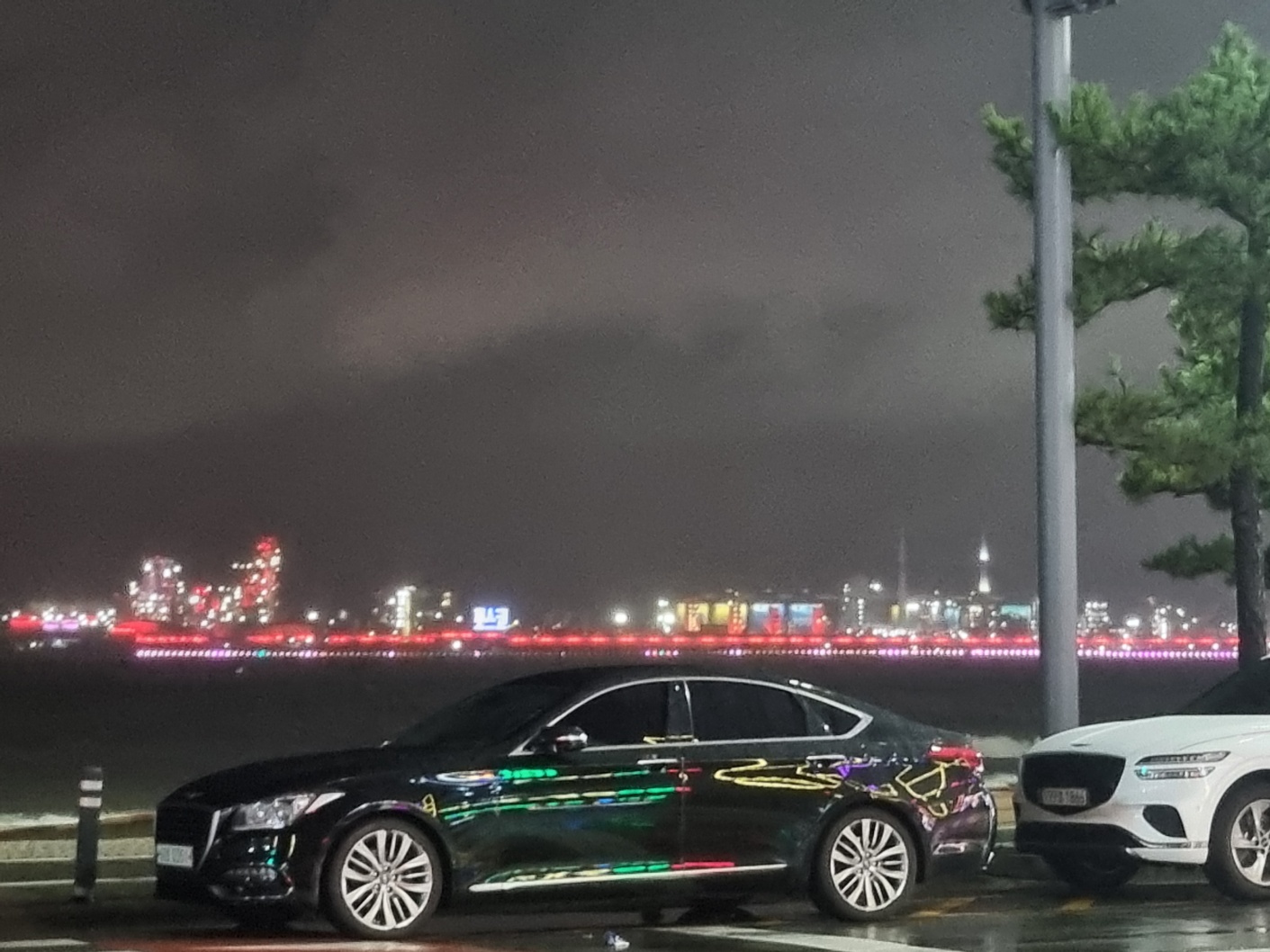 저녁이 되니 반대편 포스코에서 불빛이 비추기 시작한다.