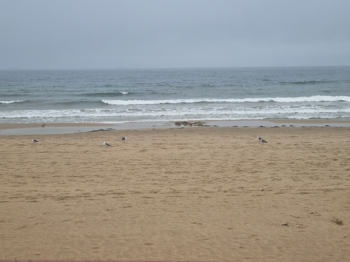영일대 해수욕장은 갈매기들이 자리를 잡고 있다.