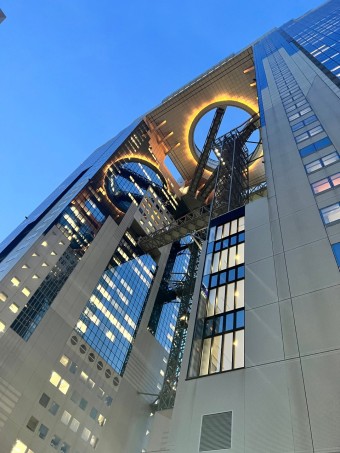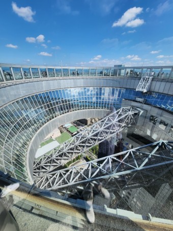 2. 스카이 워크 스릴 넘치는 경험을 추구하는 사람들에게 우메다 공원의 스카이 워크는 절대 놓칠 수 없는 곳입니다. 거대 도시 위로 높이 매달려 있는 이 야외 산책로는 유리 바닥 통로를 걸을 때 감동적인 전망과 흥분감을 선사합니다. 사진 애호가와 모험 캠페인가에게도 이상적입니다. 스카이 워크는 대도시의 멋진 수직 샷을 촬영할 수 있는 오사카의 세련된 장소 중 하나입니다.