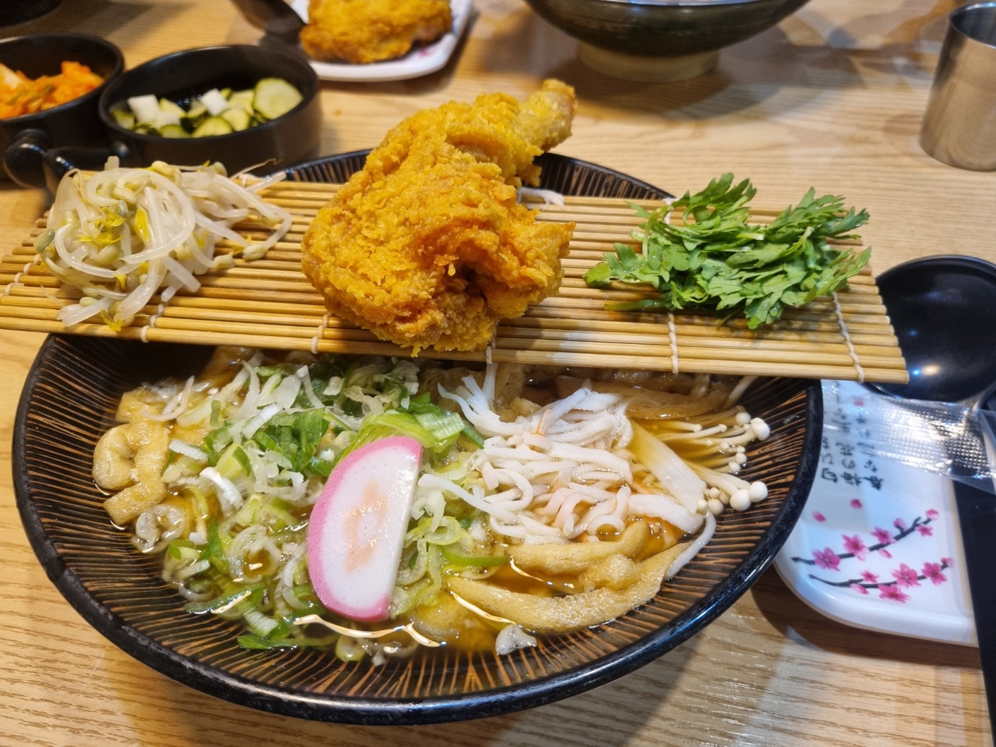 기름진 닭다리에 얼큰하고 매콤한 우동에 같이 먹기 좋아요 !!!