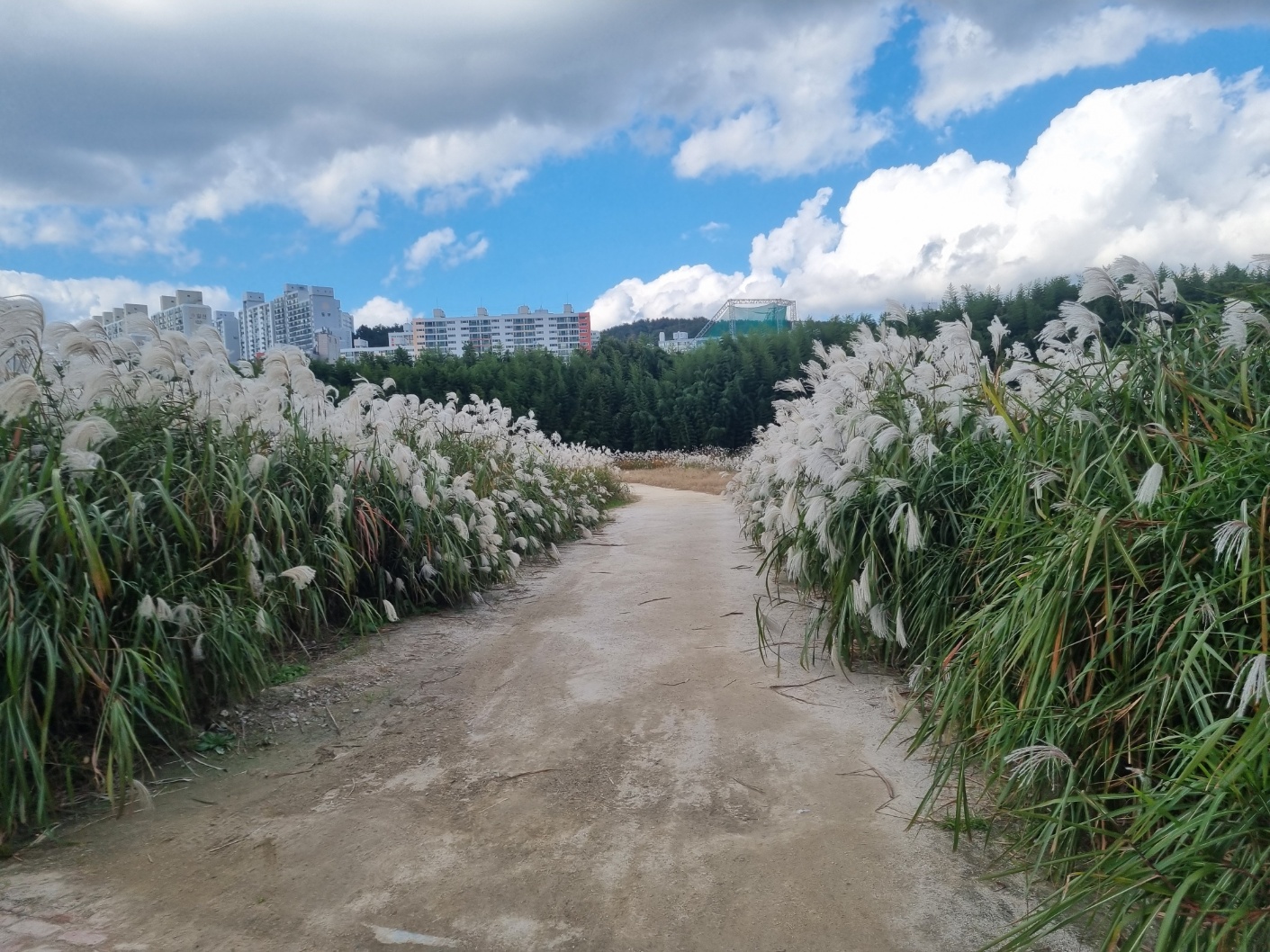 대나무숲을 나오니 갈대밭이 보이고 울산시내가 보인다.