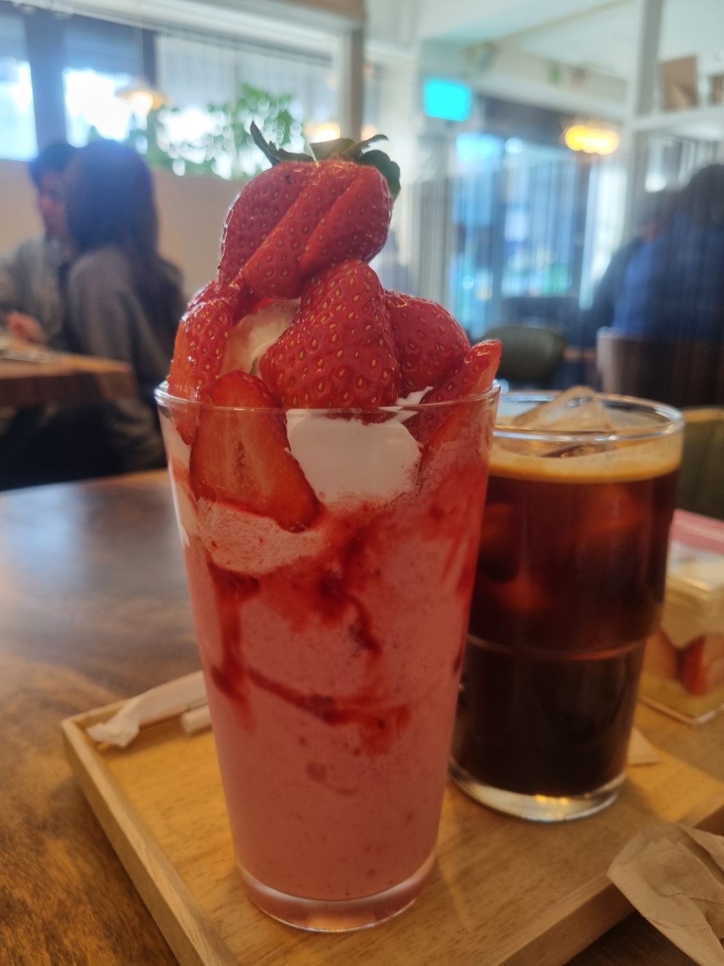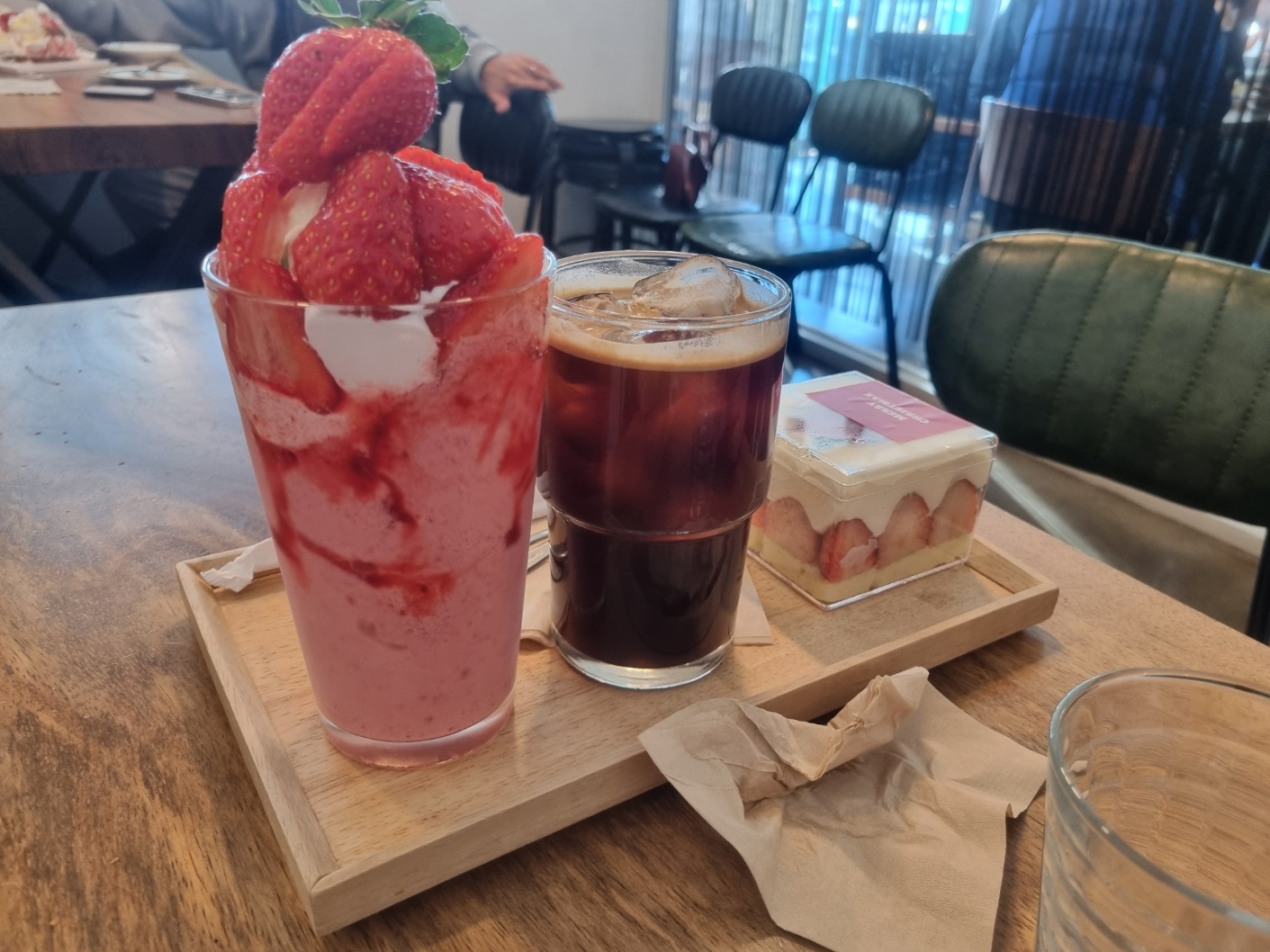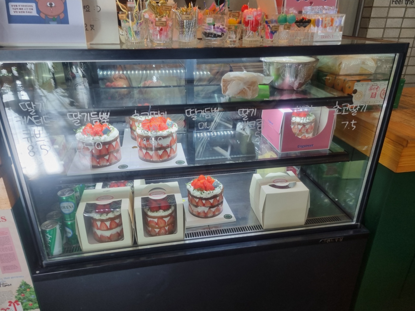 우리는 딸기 커스터드큐브 1개, 아메리카노 , 봄날의 딸기를 주문했다.