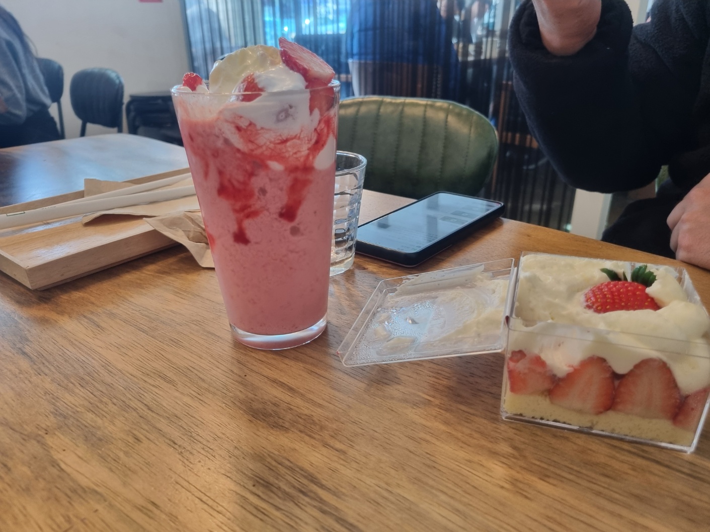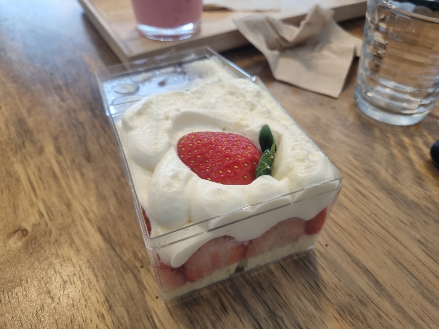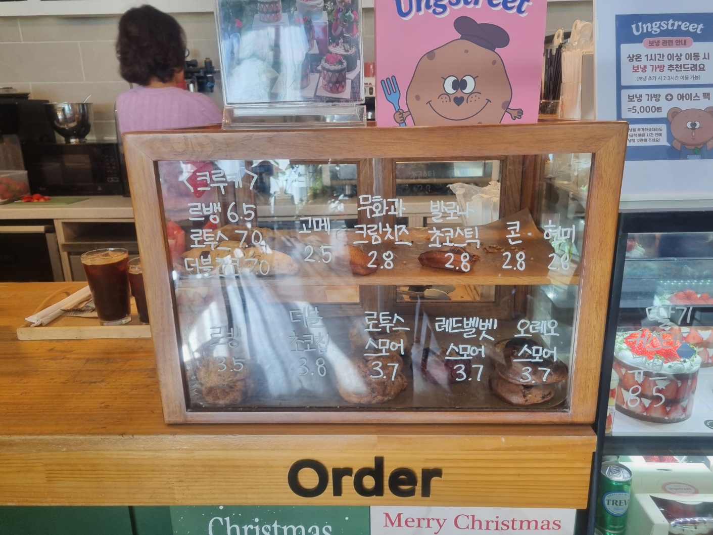 우리는 딸기 커스터드큐브 1개, 아메리카노 , 봄날의 딸기를 주문했다.