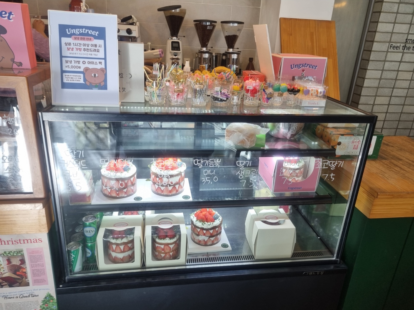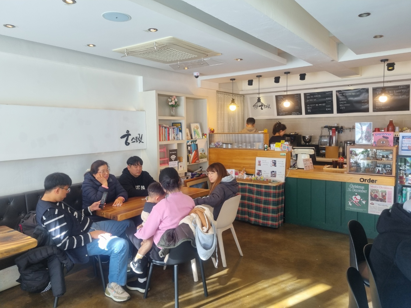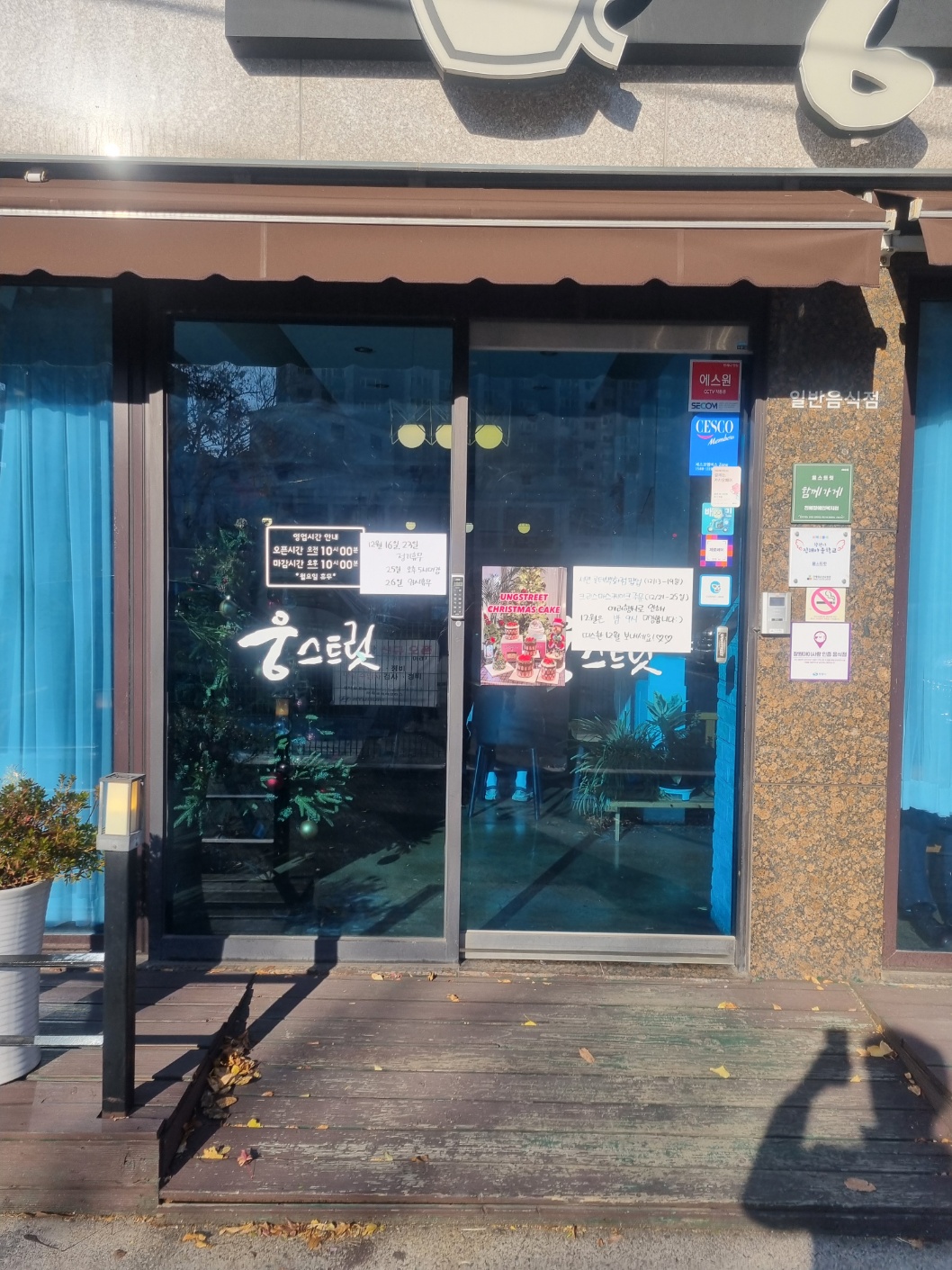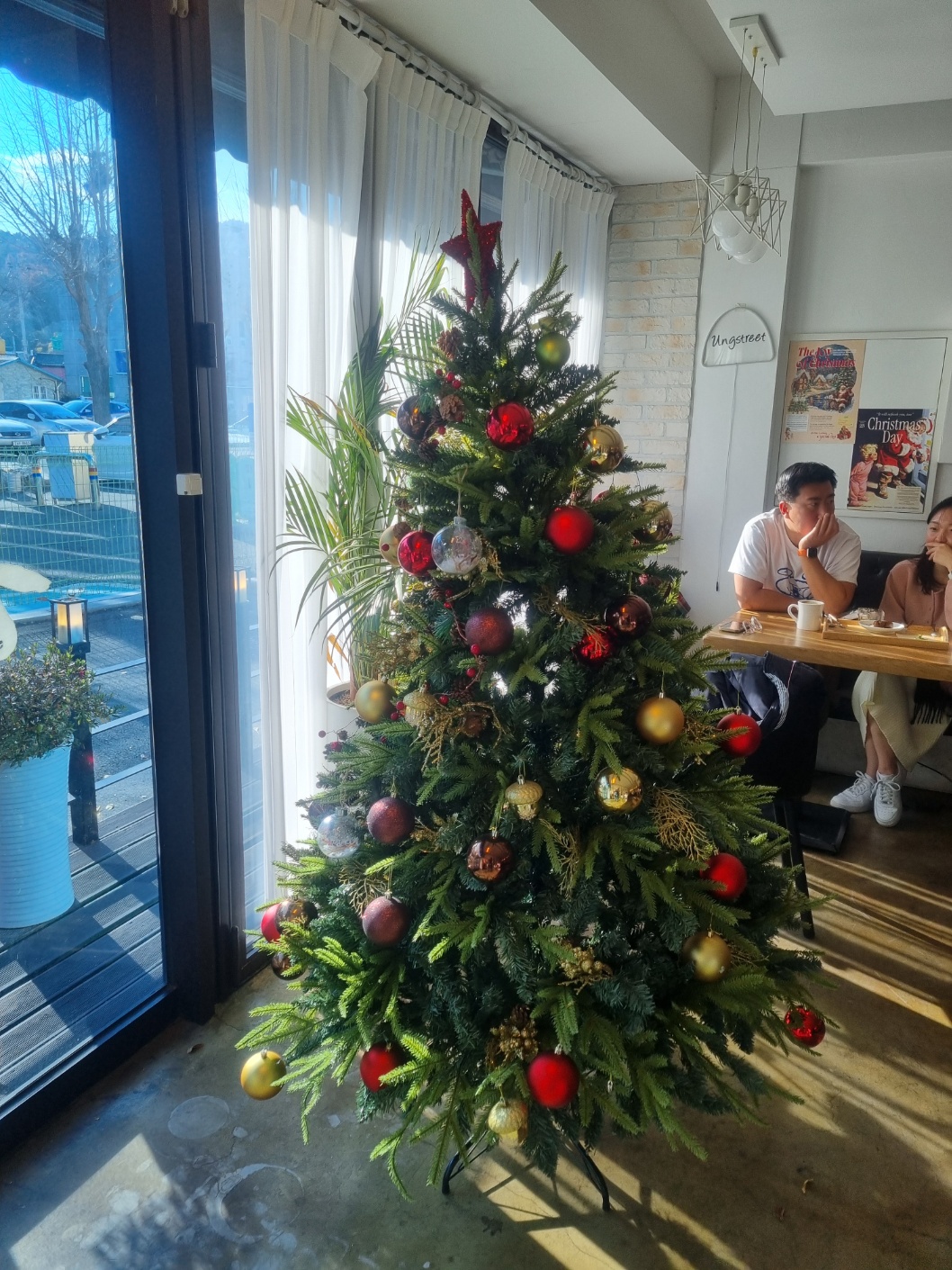카페 입구에는 크리스마스를 맞이해 장식한 트리가 있습니다.