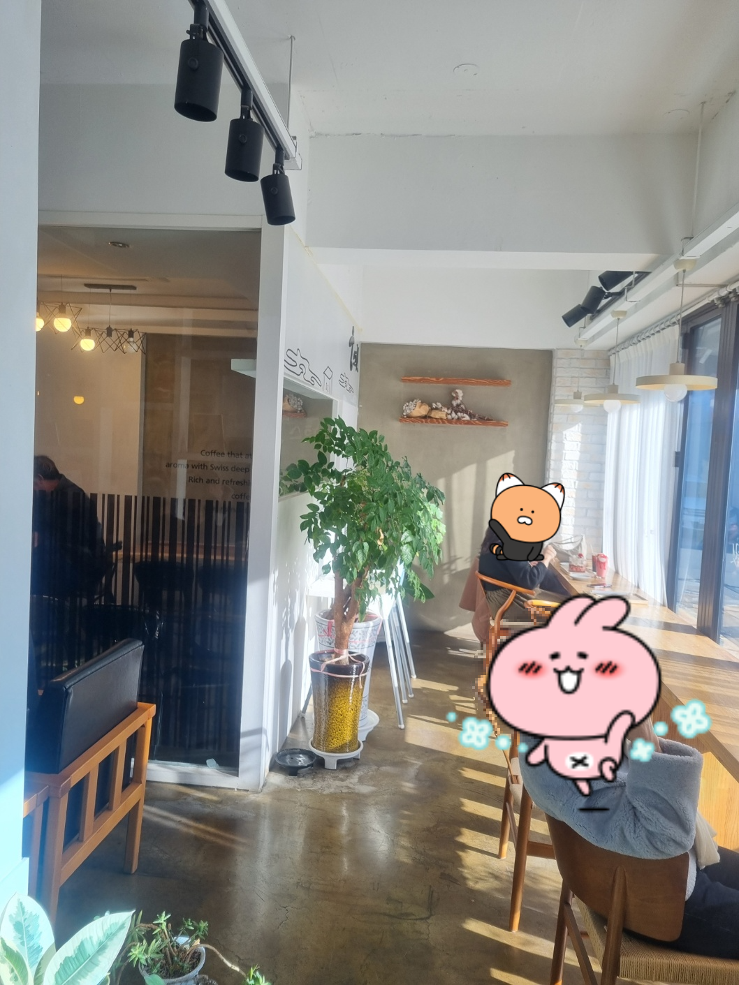 가게 내부에는 창가에 있는 테이블도 있고 룸1개에 2개의 테이블 입구에 3개의 테이블이 구비되어 있다.
