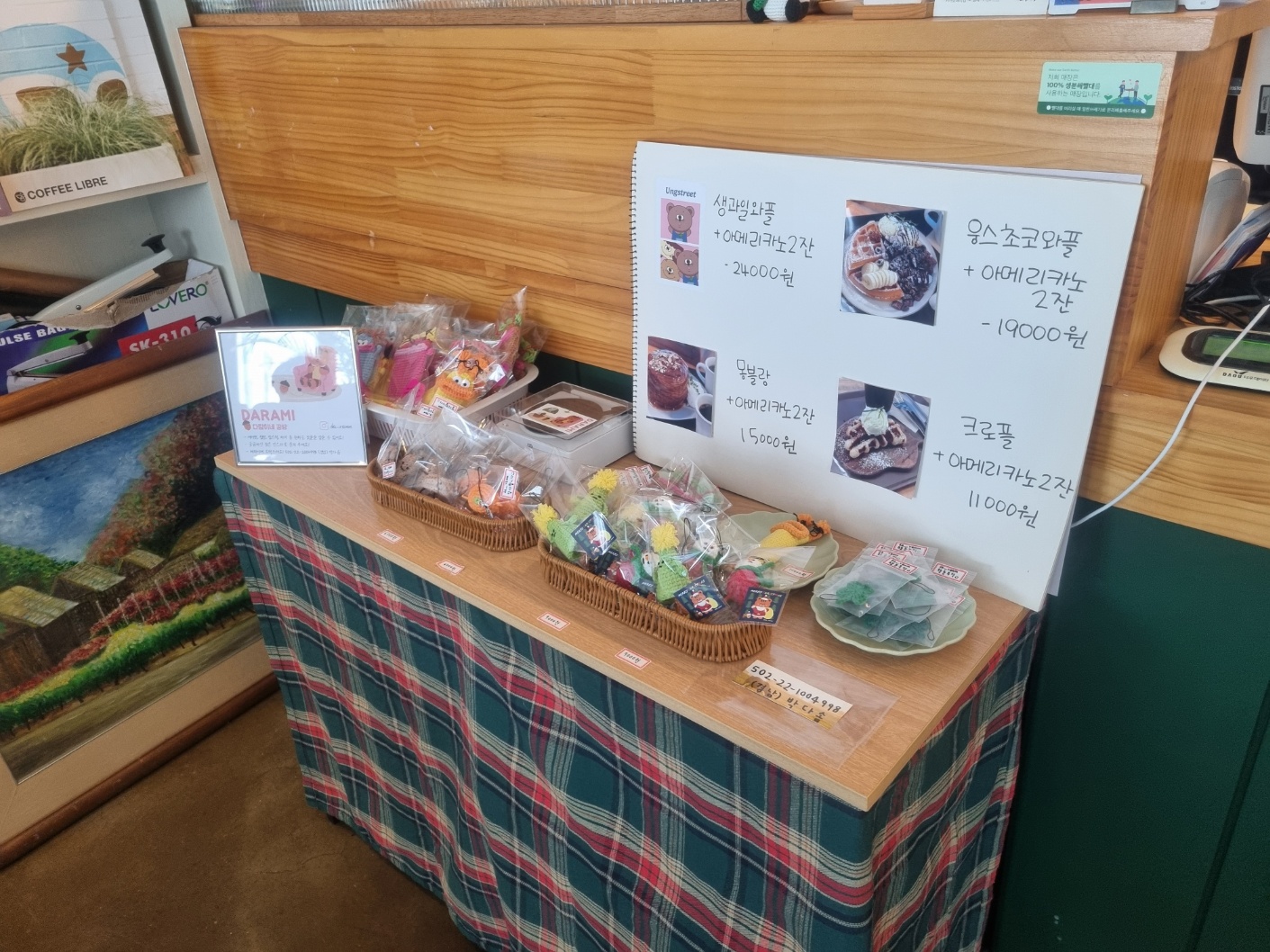 카운터 옆에는 아기자기한 소품이 구비되어 있습니다.