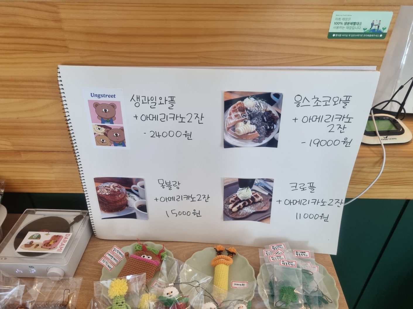 딸기디저트 뿐아니라 와플도 판매가 가능합니다.