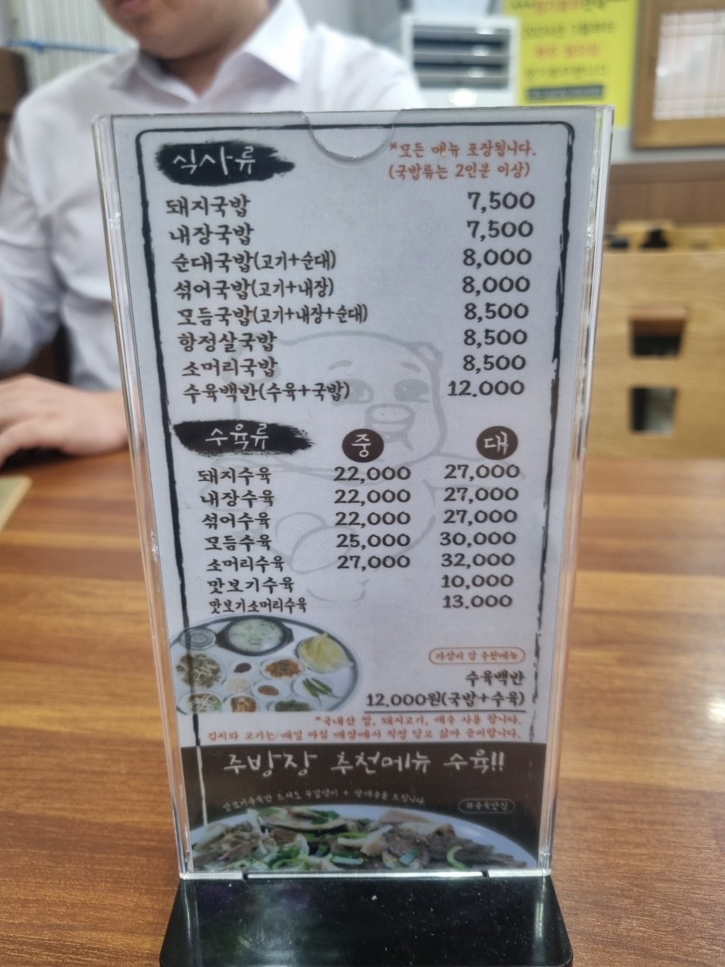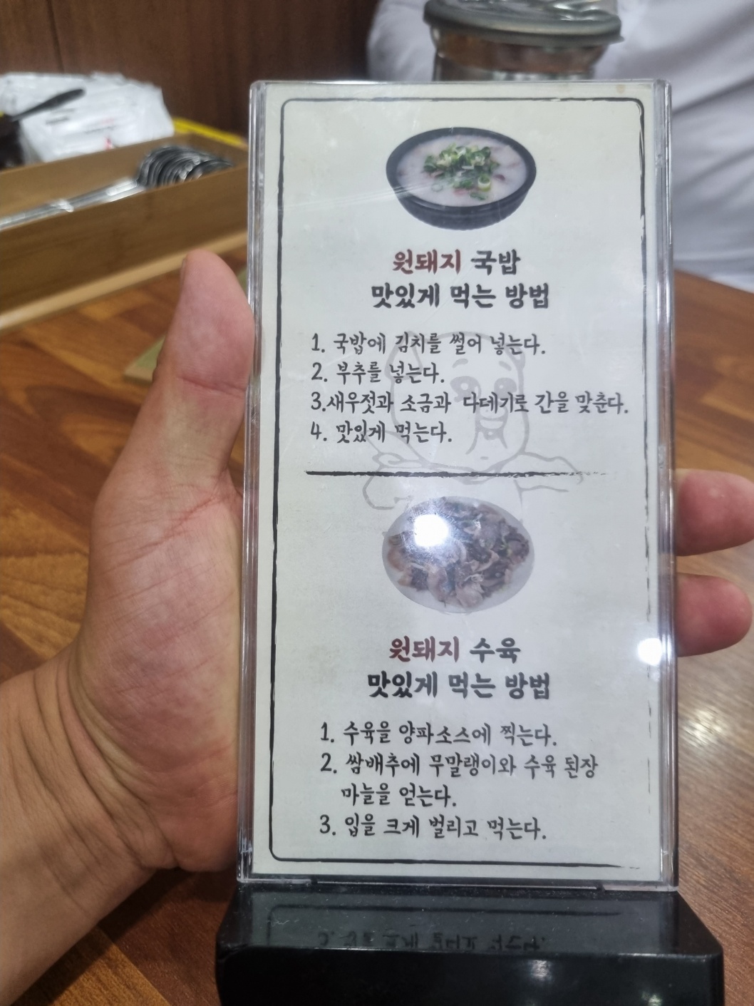 그리고 메뉴판과 국밥 맛있게 먹는 방법이 비치되어 있습니다