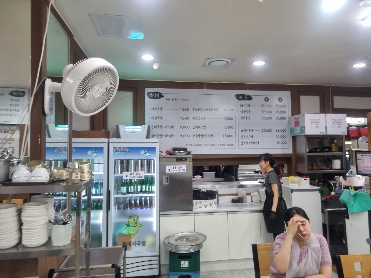 4명에서 왔는데 돼지수육 중 1개와 돼지국밥2개, 섞어,순대국밥 1개를 주문했다.