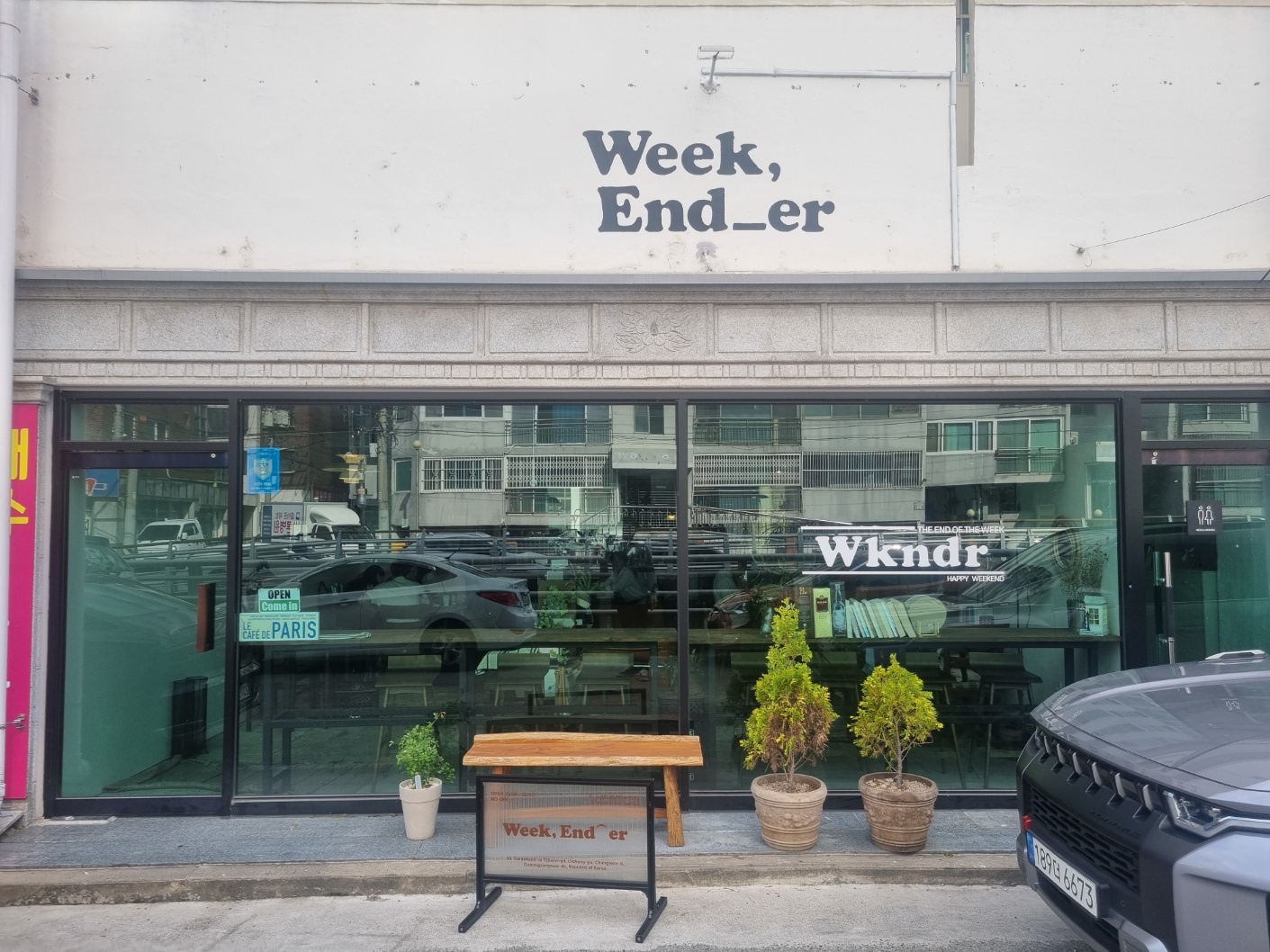 도계시장 근처에 하천가에 주차를 하고 위캔드카페에 도착했다.