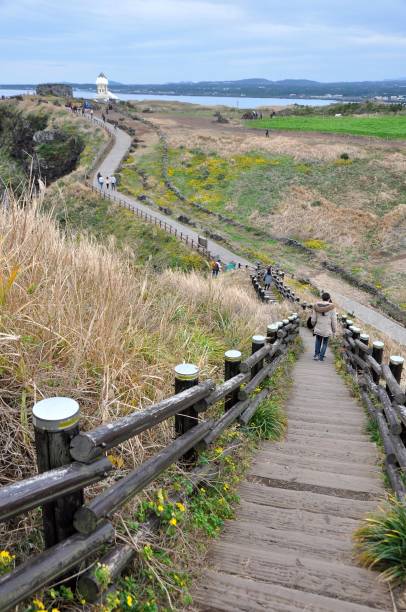 황금빛 꽃의 광활한 들판 봄에 섭지코지에서 가장 눈에 띄는 곳은 끝없이 펼쳐진 황금빛 유채 꽃밭입니다. 이 지역을 걷다 보면 바다 숨결에 부드럽게 흔들리는 수백만 개의 섬세하고 영웅적이지 않은 꽃에 둘러싸이게 됩니다. 푸른 하늘과 바다와 어울리는 생생한 색상 은 초현실적이고 지울 수 없는 시각적 경험을 선사합니다.. 섭지코지 등대와 경치 좋은 산책로 섭지코지를 방문하는 하이라이트 중 하나는 상징적인 섭지코지 등대로 이어지는 경치 좋은 해안 산책로입니다. 이 산책로는 바다, 폭풍우가 치는 보석 같은 경치의 감동적인 파노라마 전망을 제공합니다. 형태, 그리고 먼 섬들. 등대 자체는 인화에 환상적인 장소로, 둘레의 아름다움을 감상할 수 있는 높은 모서리 지점을 제공합니다.