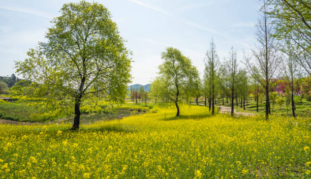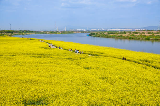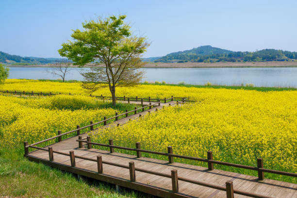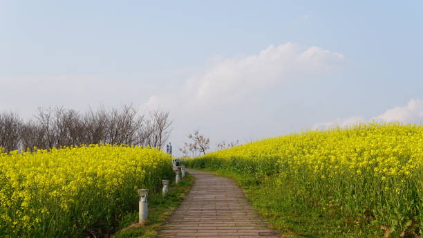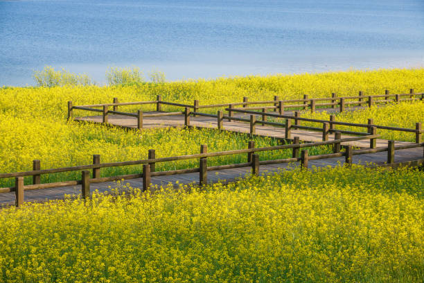 유채꽃밭을 따라 조성된 산책로를 거닐며 꽃의 향기를 맡고, 자연을 만끽할 수 있습니다. 바람에 살랑이는 유채꽃과 함께 걷다 보면 스트레스가 해소되고 기분이 상쾌해지는 것을 느낄 수 있습니다.