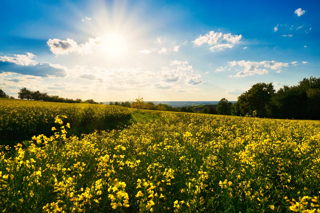 푸른 하늘과 유채꽃이 조화를 이루는 드론 촬영 포인트