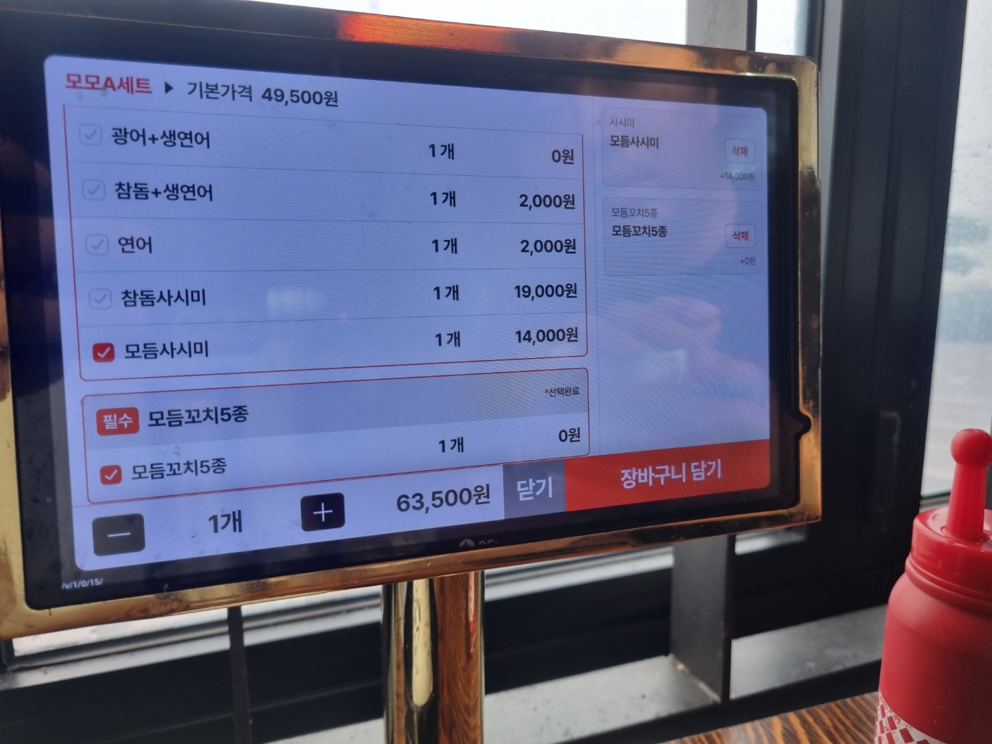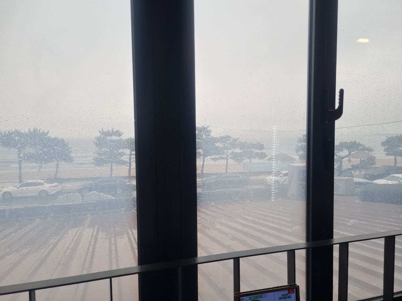 저희는 바다뷰가 앞에 보이는 자리로 자리를 잡고 나서