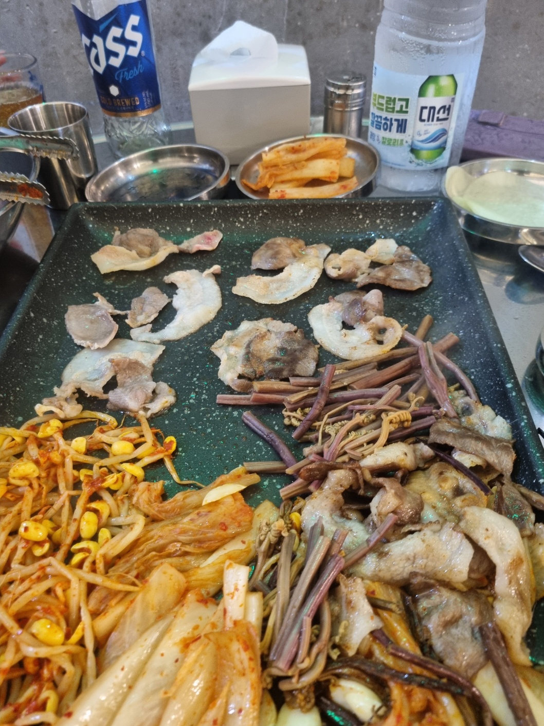 대패 삼겹살이 익고 나서 고사리와 콩나물과 같이 해서 먹으면 좋다. ^^