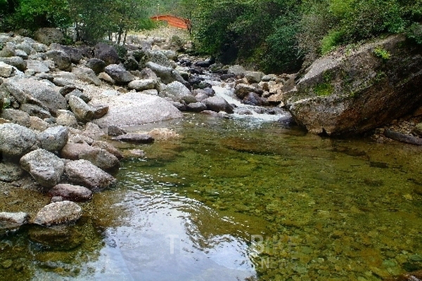 자연 그대로의 청정 계곡: 상류로 갈수록 물이 맑고 투명하며, 계곡 구조는 적당히 완만해 가족 여행에도 적합합니다