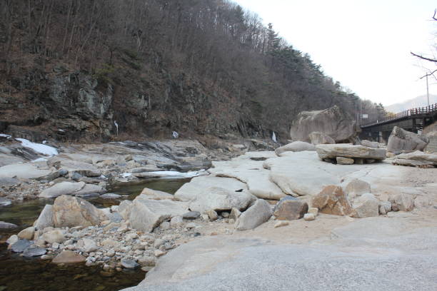 계곡 흐르는 물줄기와 암반 풍경: 계곡 중간 지역에서 촬영 시 자연 반영이 아름다움