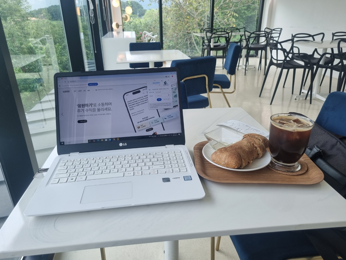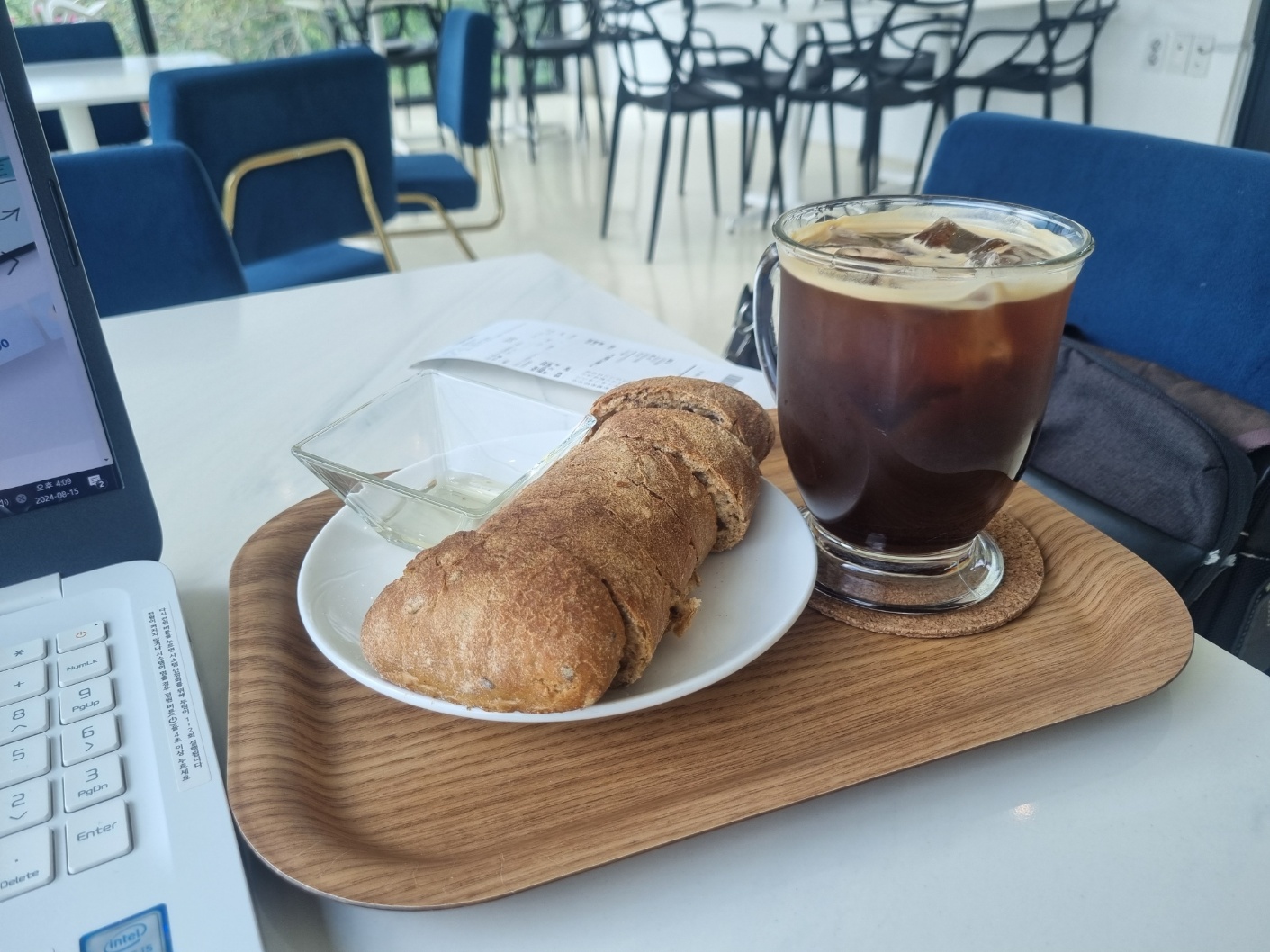 업무를 하기위해 자리를 잡았고, 주문했던 아메리카노와 치아바타를 받고 나서