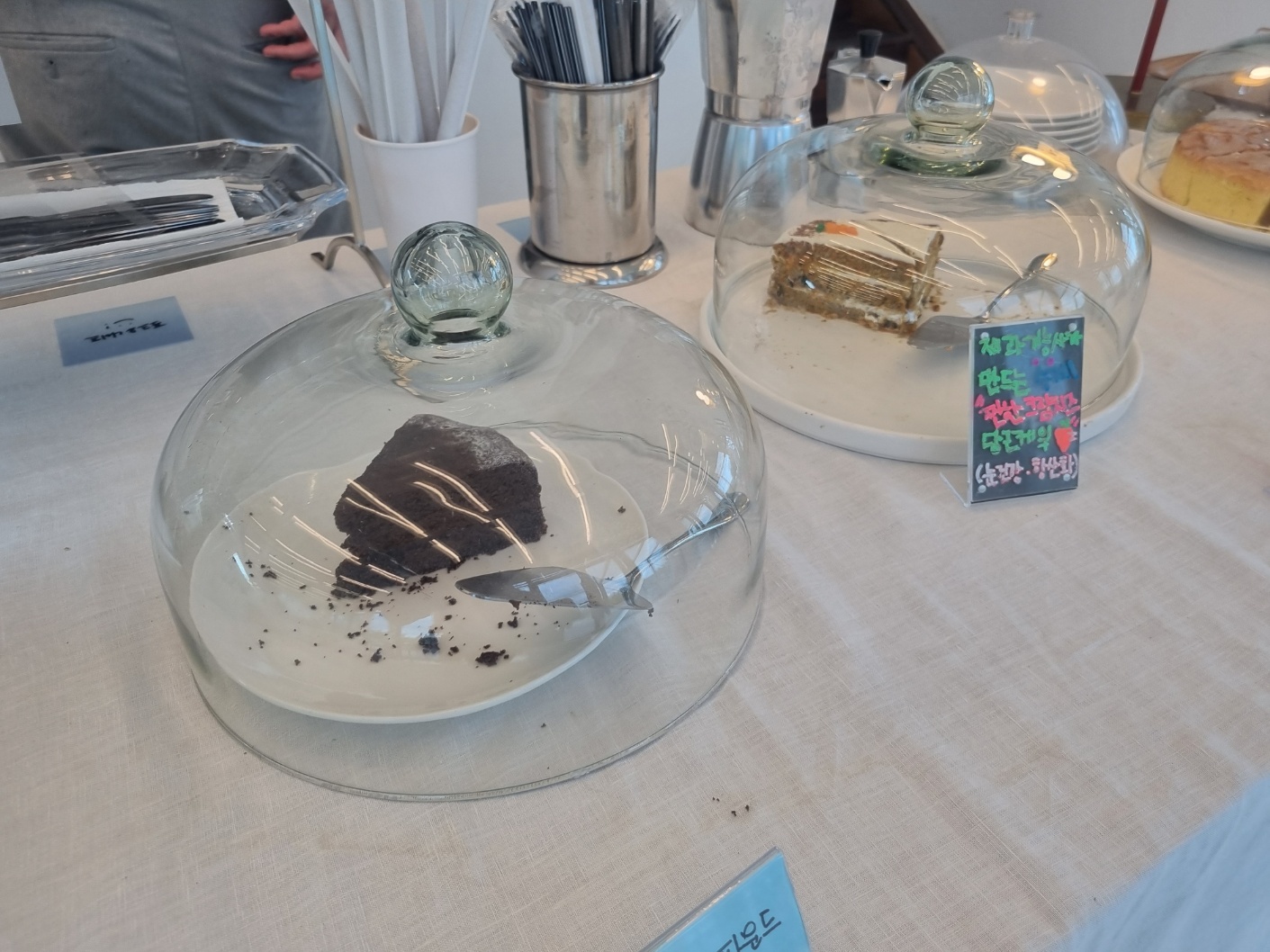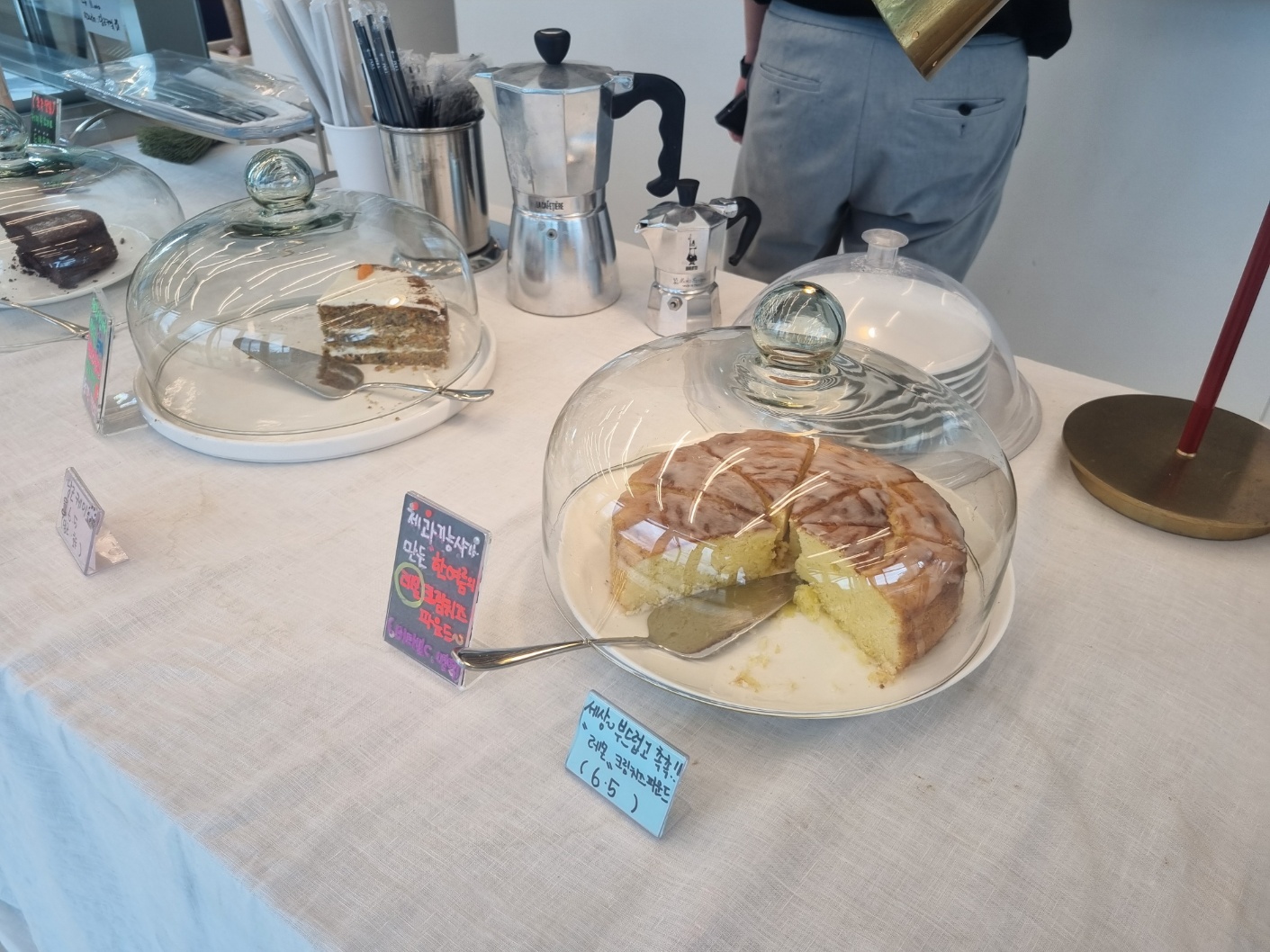 카페 입구에 오면 메뉴판과 치아바타, 케잌 디저트가 있다.