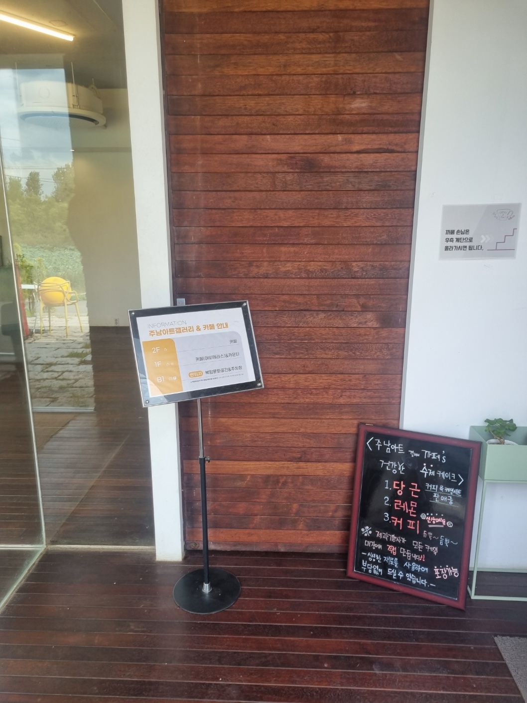 2층에는 야외테라스가 구비되어 있고, 주남호수의 풍경을 볼수 있으며 문화예술공간으로 힐링과 쉼이 가능한 카페입니다.