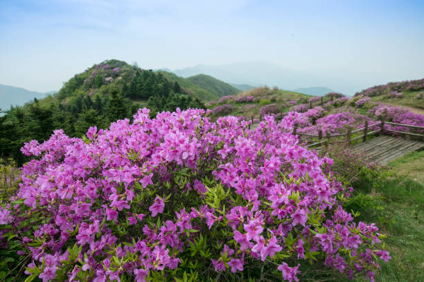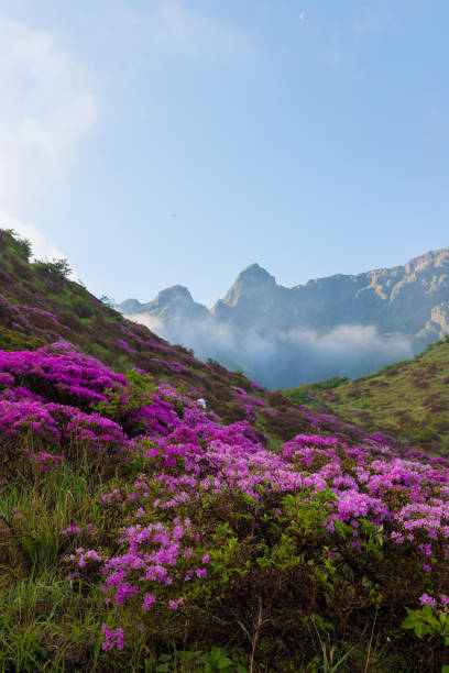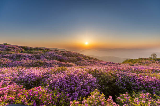 2. 꽃 이 만발 하는 계절은 강수량에 따라 다를 수 있으므로 여행을 계획하기 전에 항상 가장 뒤쪽의 꽃 접종 시기를 확인하는 것이 좋습니다. 감동적인 전망과 사진 명소 사진을 찍기 에 가장 좋은 장소 중 하나는 진달래 능선으로 , 방문객 이 분홍색 꽃으로 덮인 구릉의 탁 트인 전망을 즐길 수 있습니다. 꽃 위로 낮의 햇살을 비추 든 따뜻한 빛을 비추는 황금빛 저녁 이든 영 귀산 에서의 모든 순간 은 그림처럼 완벽 합니다.