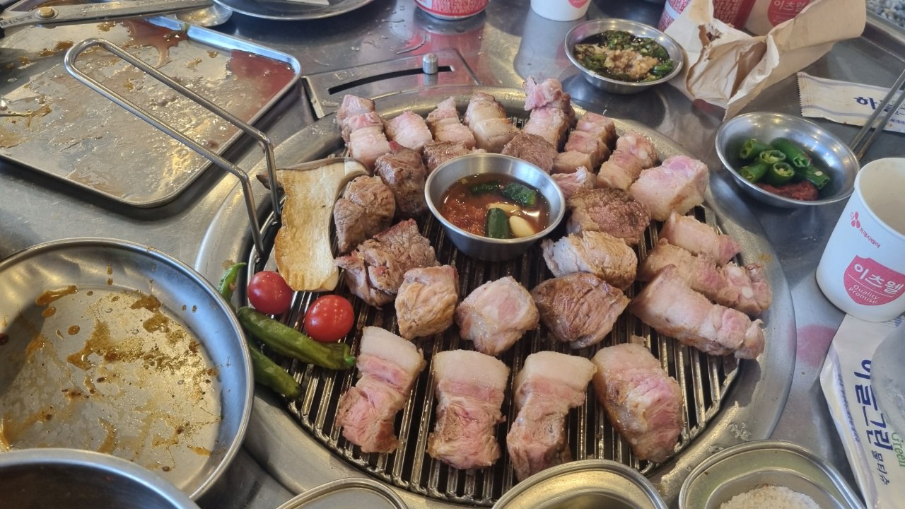 고기를 먹으면서 야외에 바다풍경을 보면서 고기먹기 좋은 곳이다.