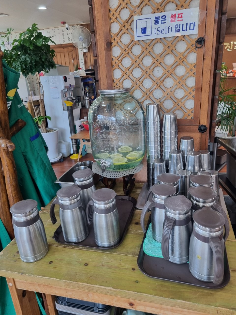왼쪽으로 가보면 물은 셀프코너입니다.