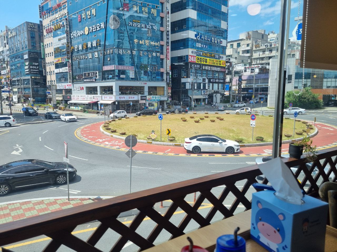 가게 도착후 창가에 자리를 잡고,, 상남동로타리를 바라보며 ,