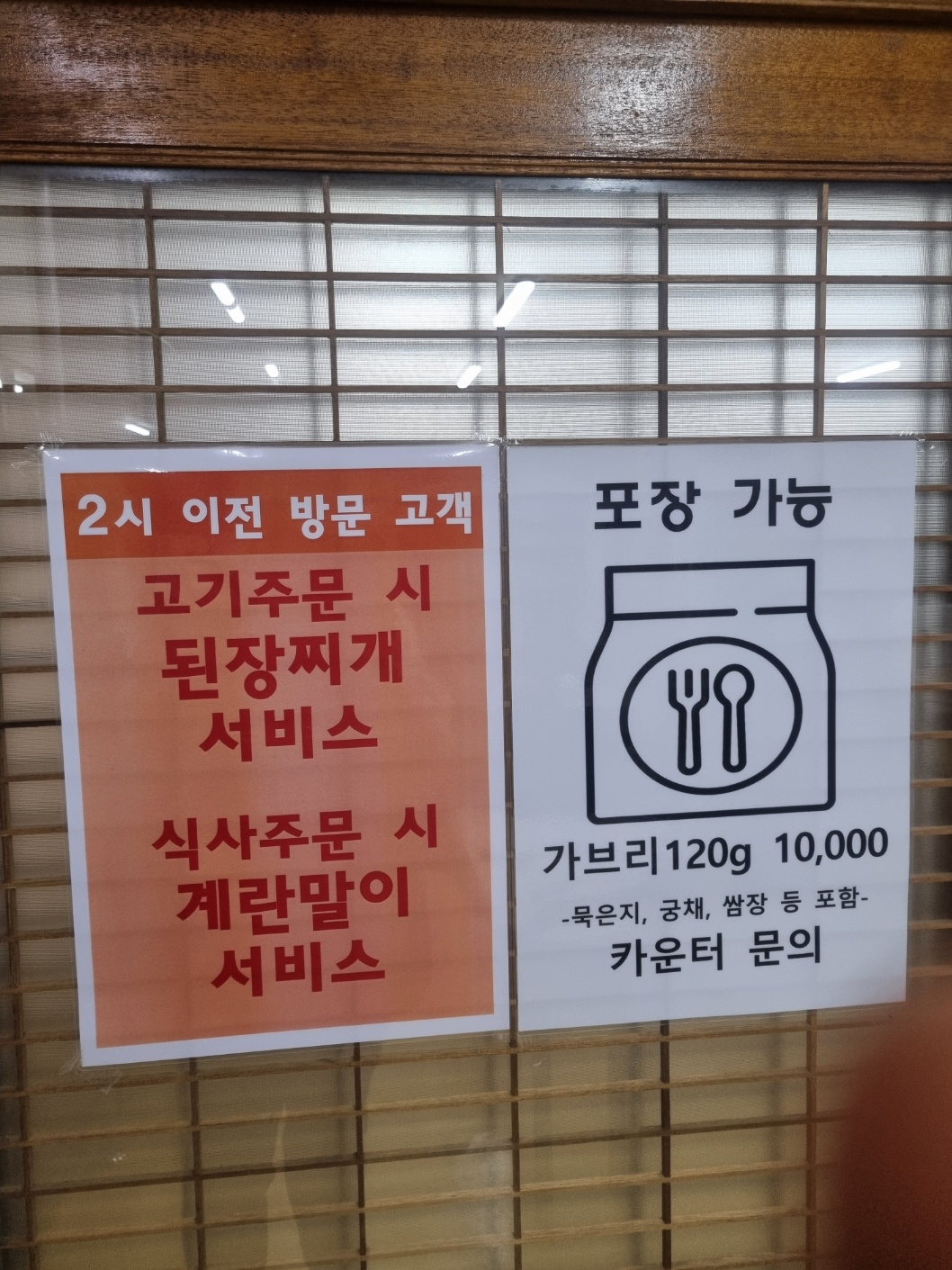 2시 이전 방문시에는 된장찌개와 계란말이 서비스가 나오고, 포장이 가능합니다.