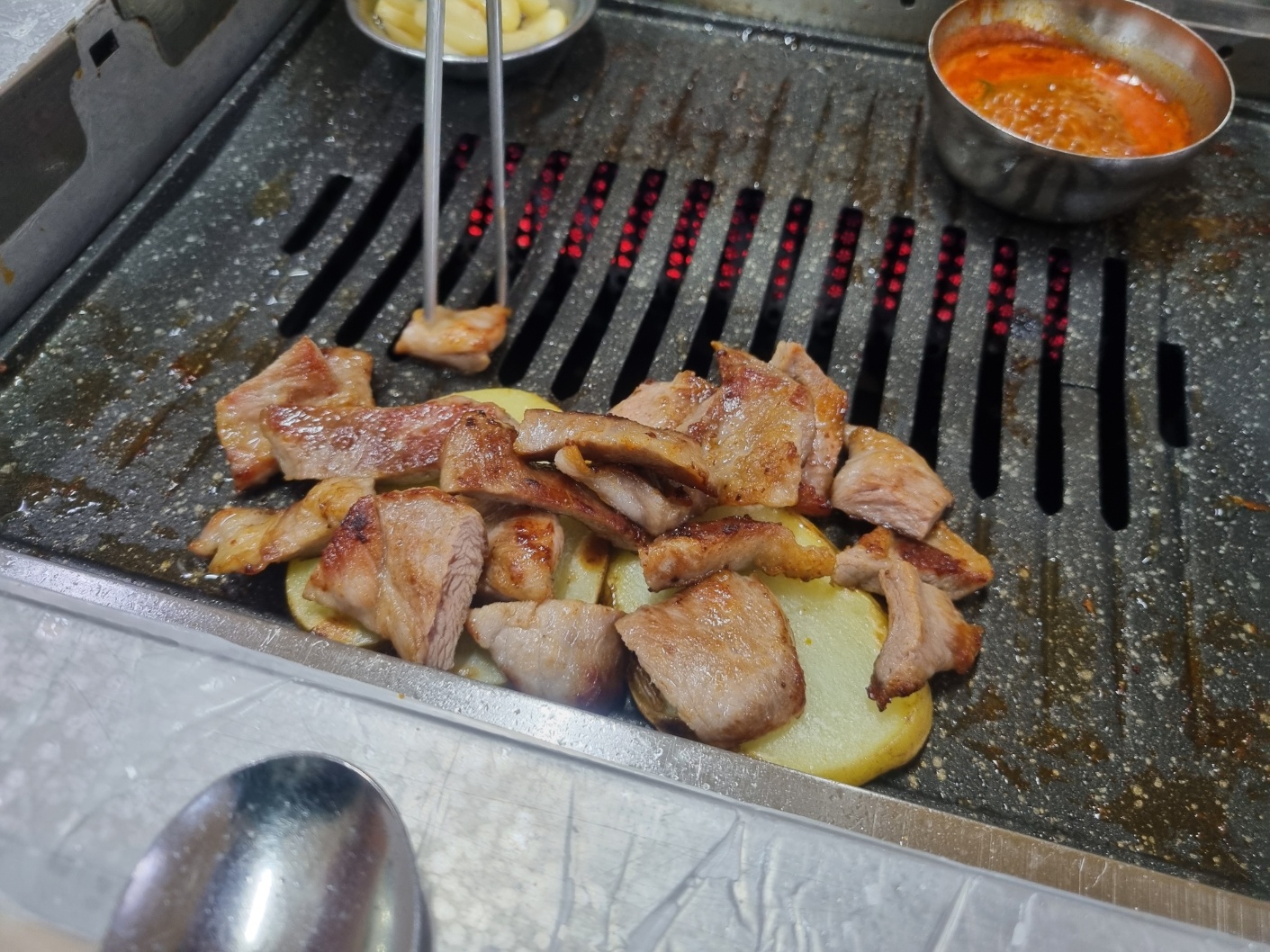 구워진 고기는 멸치젓에 찍어먹는 것을 추천 !!!!