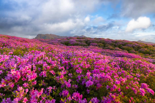 단양 소 백산은 구릉과 멋진 파노라마 전망이 있는 그래픽 한 산입니다. 봄에는 수천 개의 철쭉 이 산의 경사지에서 피어나 초현실적인 지형을 만들어내며 산이 활기를 띱니다. 분홍색과 화려한 색조 의. 푸른 하늘을 배경으로 능선을 따라 끝없이 펼쳐진 철쭉은 볼 만한 광경입니다. 단양소 백산의 철쭉 밭을 방문하기 에 세련된 시기는 4월 중순부터 5월 초입니다. 이때 꽃이 만개하여 산을 감동적인 색상으로 덮습니다.
