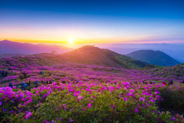 한국의 봄은 자연의 아름다움을 자극하는 계절이며 , 이 계절의 가장 매혹적인 광경 중 하나는 진달래가 피는 것입니다. 벚꽃 이 각광을 받지만 , 진달래의 생생한 분홍빛 색조는 반대로 매혹적인 광경을 만들어냅니다. 이 꽃의 경이로움을 목격할 수 있는 세련된 장소 중 하나는 멋진 진달래로 덮인 구릉지로 유명한 단양 소 백산입니다. 한국 단양에 위치한 백산은 매년 봄이 되면 분홍빛 낙원으로 변하여 자연 애호가, 여행자, 사진광들이 그 아름다움을 포착하고자 모여듭니다.