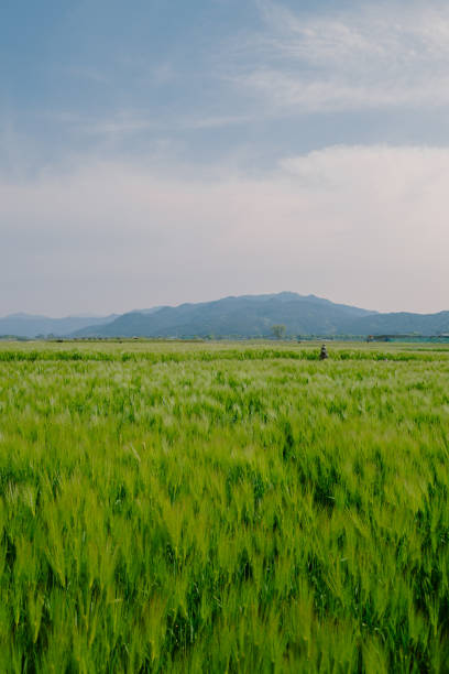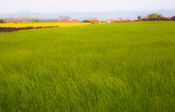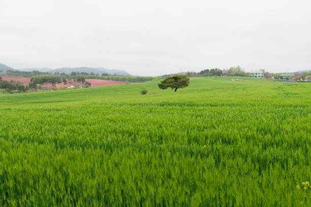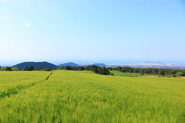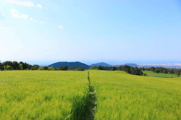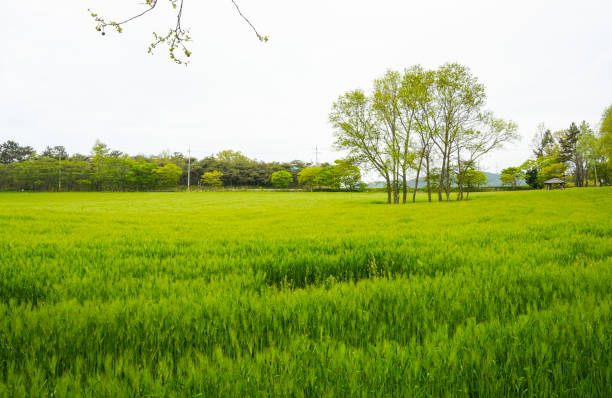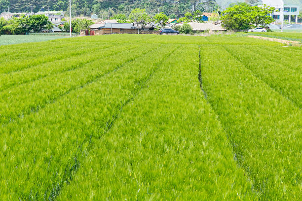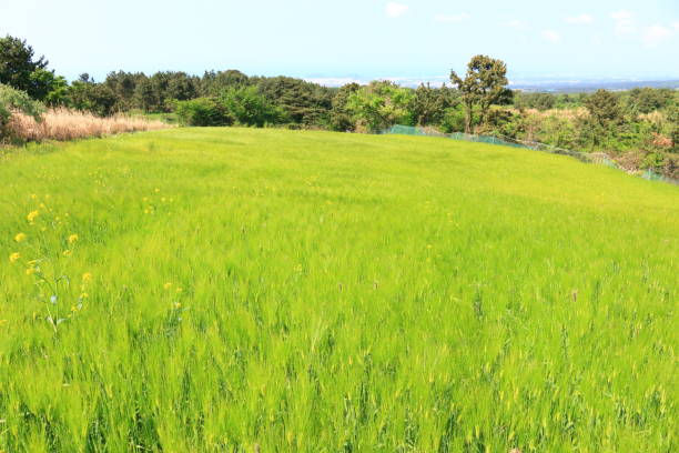 봄(3월~5월): 초록빛의 어린 보리가 자라며 생기 넘치는 녹색 융단을 형성합니다.