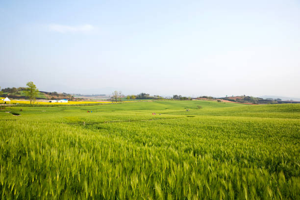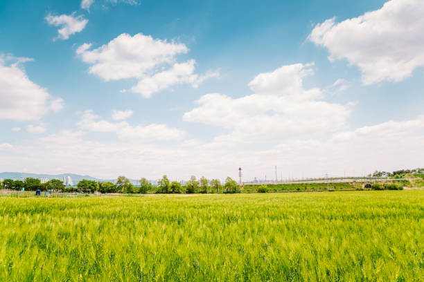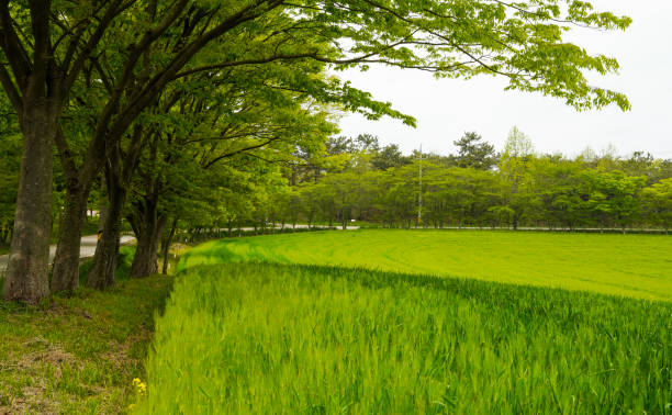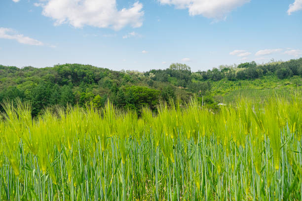 초여름(5월~6월): 푸른 보리가 바람에 일렁이며, 평온한 전원의 풍경을 연출합니다.